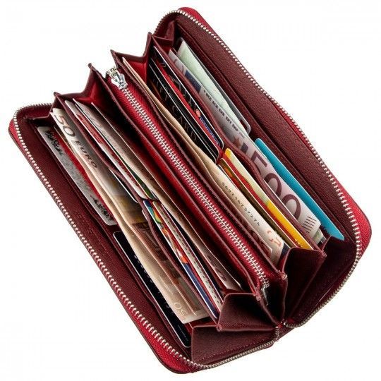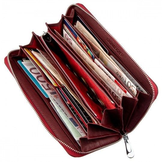 Чудовий жіночий клатч для розкішних та впевнених у собі особистостей. Зроблений з приємної та ніжної на дотик натуральної першокласної шкіри. Ну, а дивовижний червоний колір із нотками коричневого точно не залишить непоміченою господиню цього виробу. Якщо Ви не боїтеся стати центром уваги, цей клатч саме для Вас! Наповнення даного гаманця представлено у вигляді багатьох відділень для купюр та кишень для візиток або пластикових карток, яких налічується аж тридцять шість. Також на зовнішній стороні клатчу є відділення на блискавці на всю висоту для монет або інших цінних дрібниць. Запакований гаманець у білу картонну коробку з логотипом виробника.