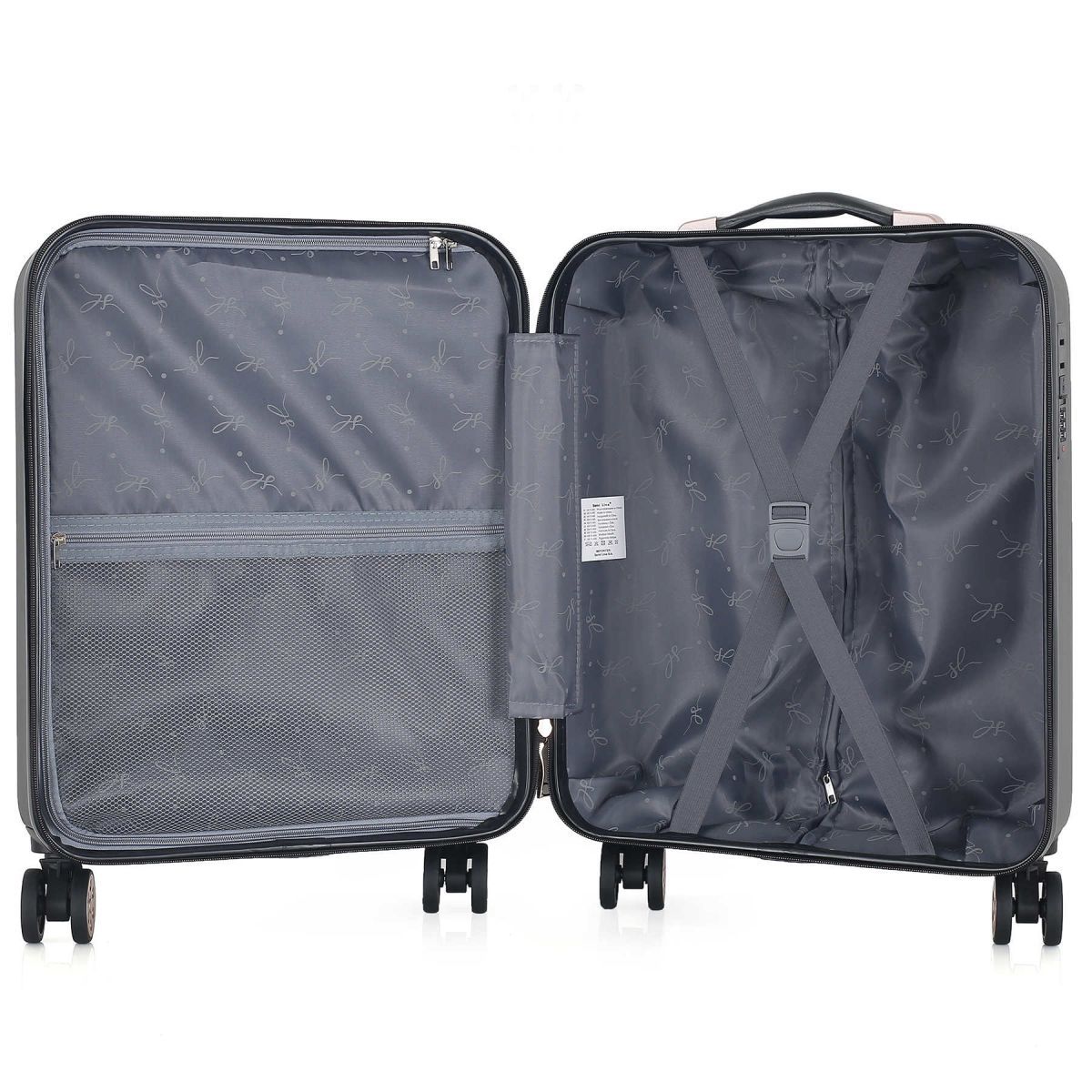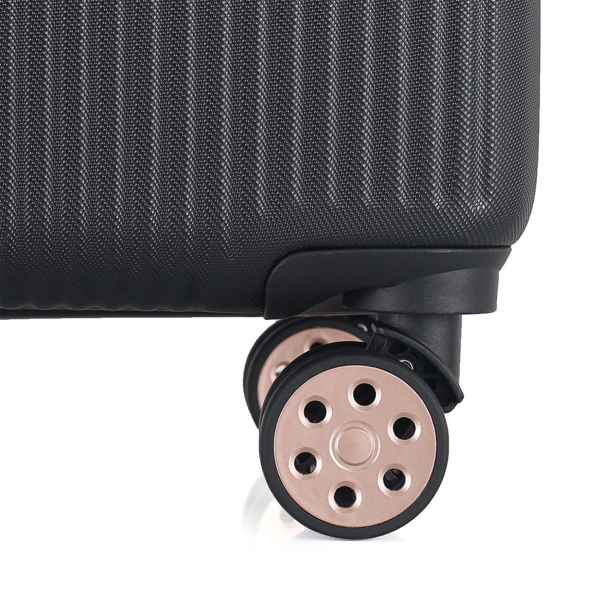 - Повноповоротні колеса - дана модель оснащена чотирма обертовими на 360 ° здвоєними колесами. Здвоєні колеса забезпечують кращий розподіл ваги та стійкість валізи, відмінне зчеплення, маневреність та мають більшу зносостійкість. Колеса кріпляться на 4 гвинти зсередини, що забезпечує високу стійкість при ударному навантаженні з будь-якого боку і дозволяє їх замінити у разі зносу.
