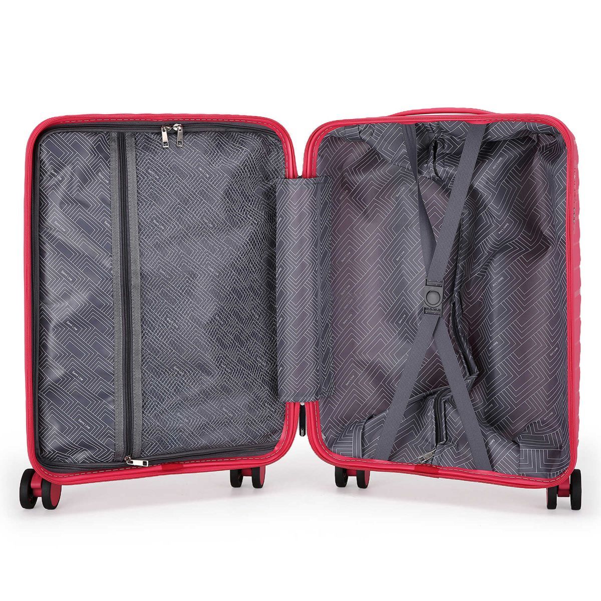 - Валіза має текстильну перегородку на блискавці, яка розділяє внутрішній простір на два основні відділення, та оснащена кишенею на блискавці для дрібних речей.