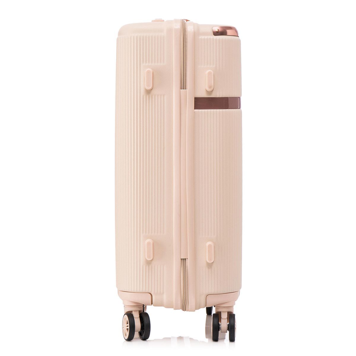 Цікавим, і більш зручним рішенням є розміщення кодового замка зверху, а абсолютно вся фурнітура виконана в одному кольорі з корпусом валізи.