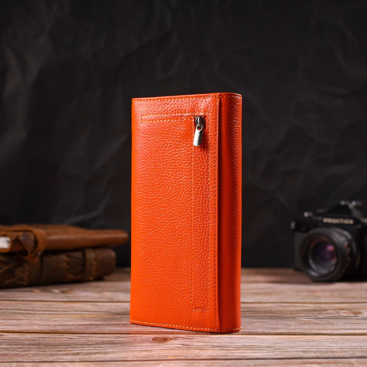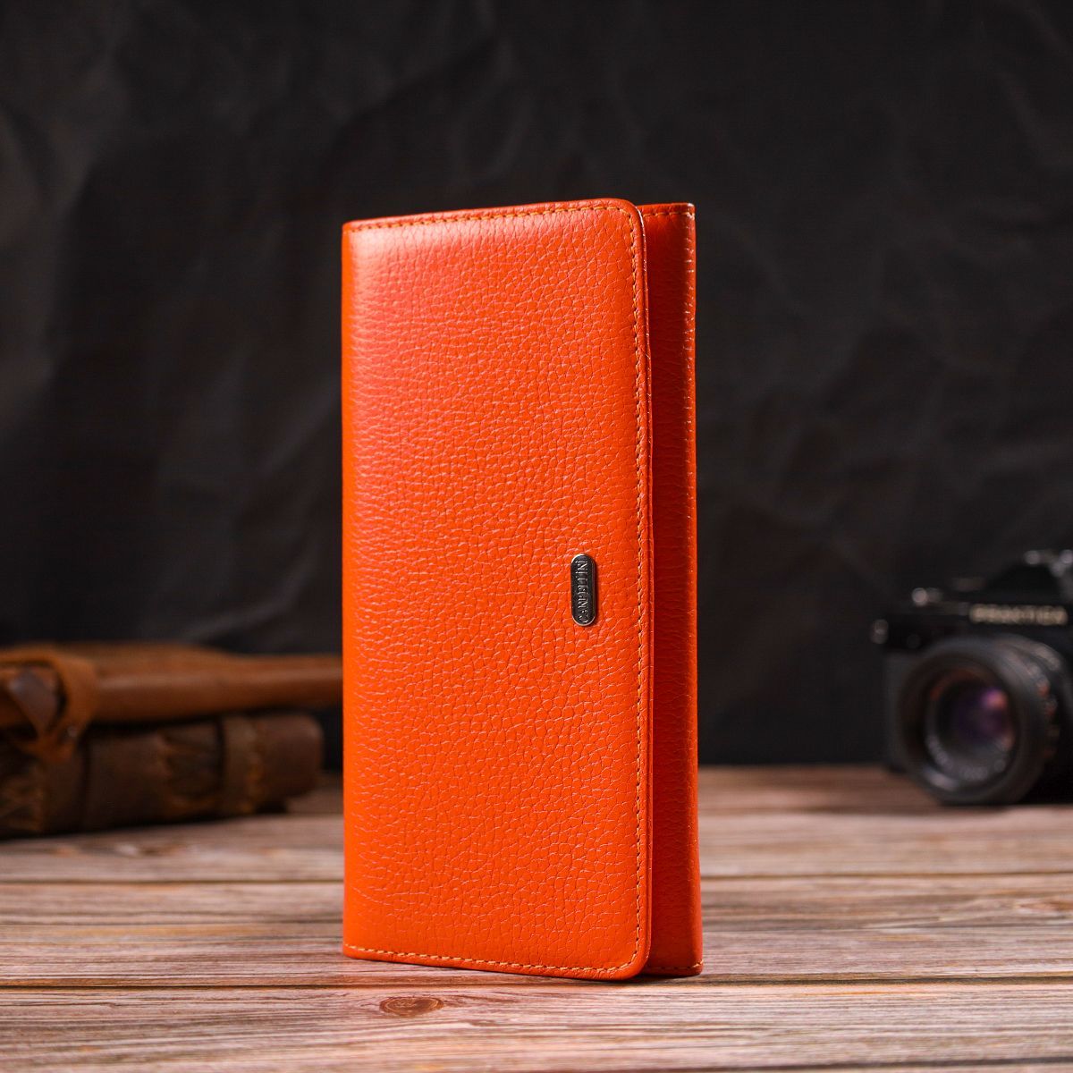 Большой женский кошелек из натуральной зернистой кожи Canpellini 21710 оранжевый.