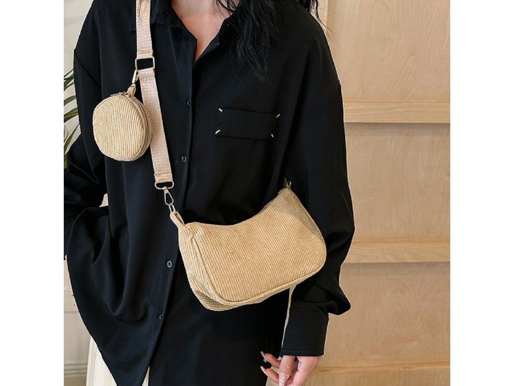 Вельветова сумка через плече з гаманцем Lilly P4-9620B біж