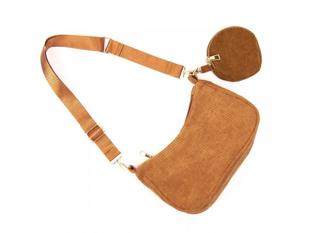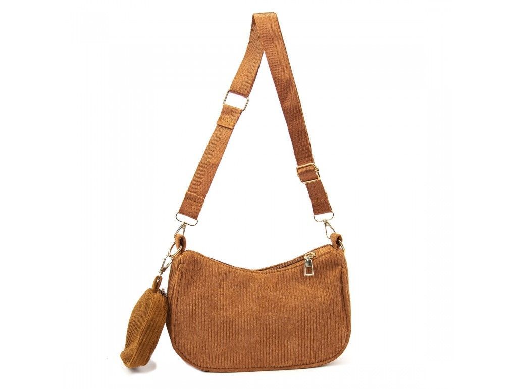 Вельветова сумка через плече з гаманцем Lilly P4-9620C коричнева
