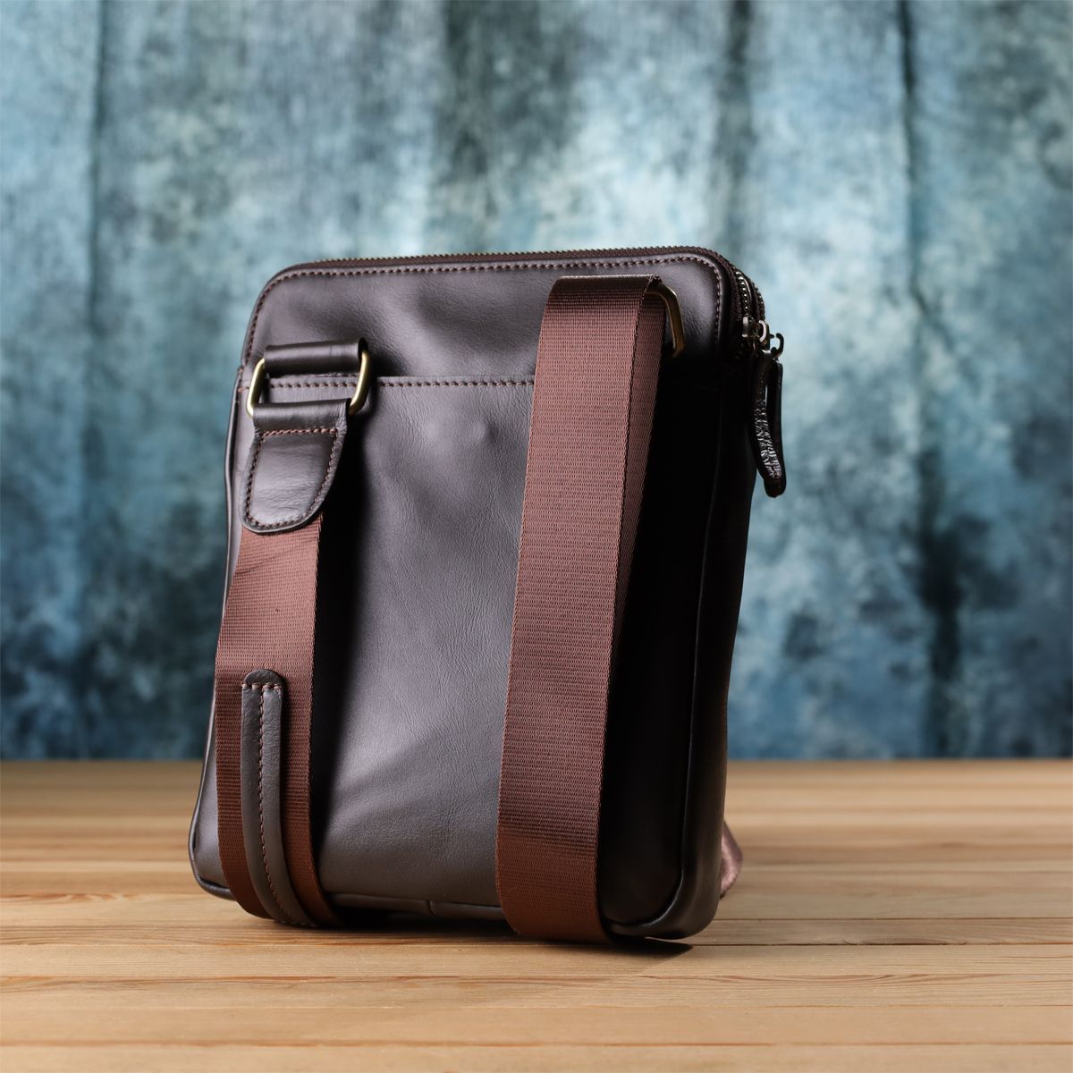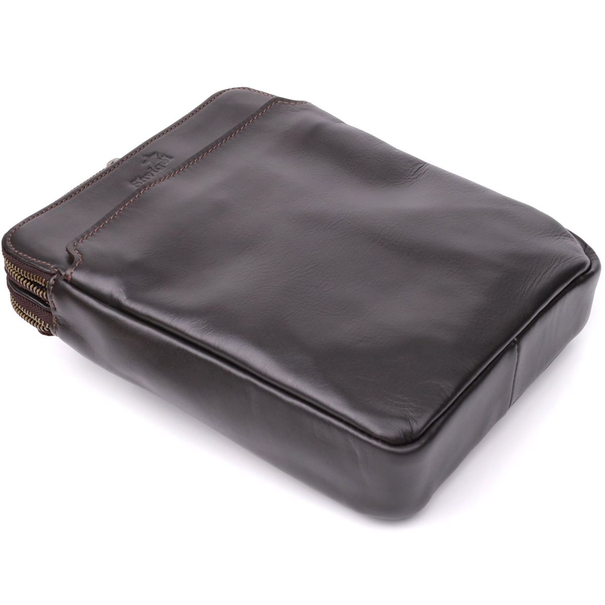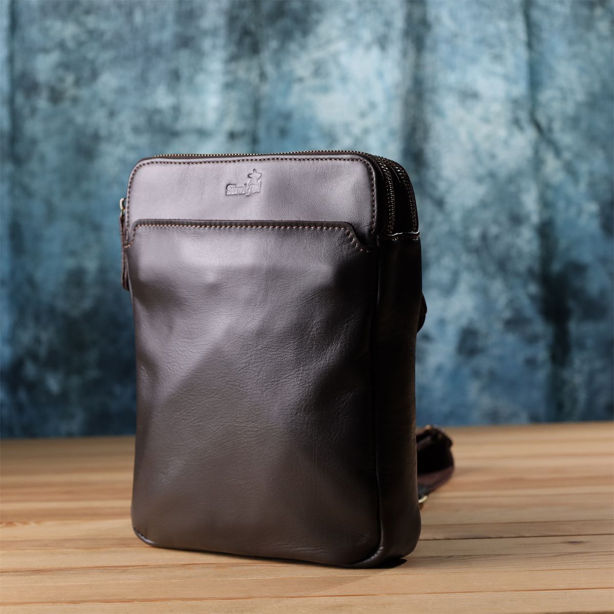 Вертикальна чоловіча сумка через плече із гладкої натуральної шкіри Shvigel 20868_1 коричнева