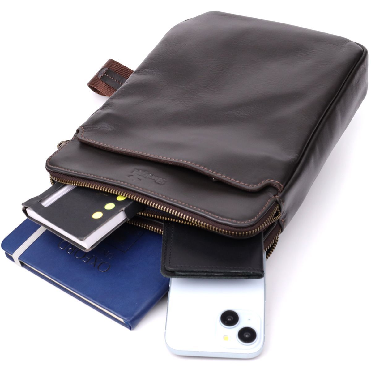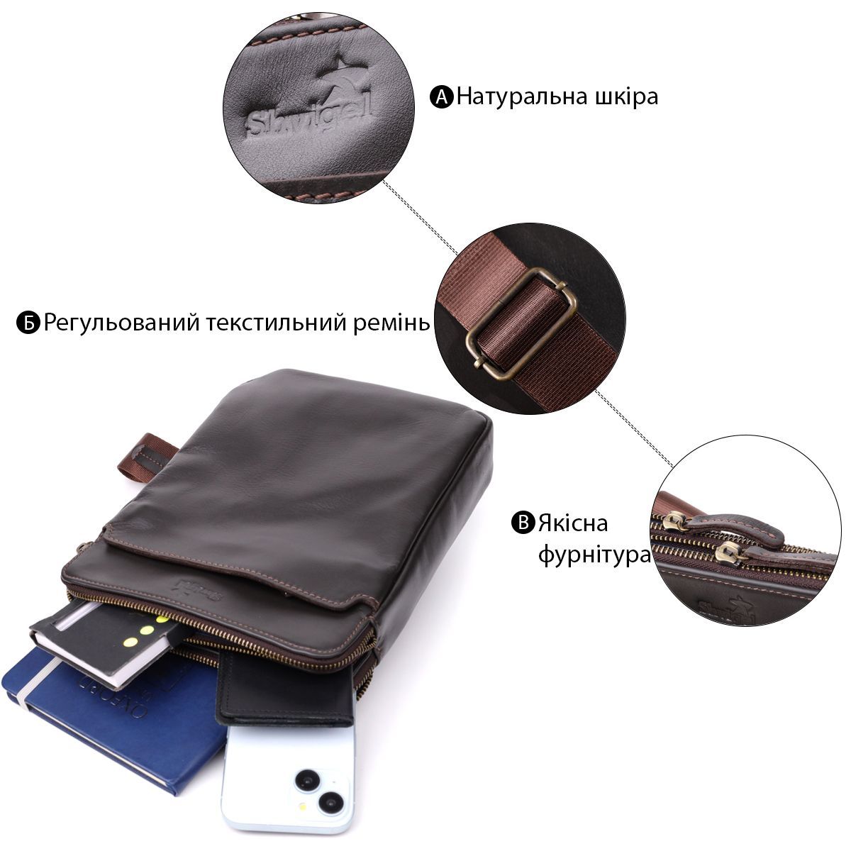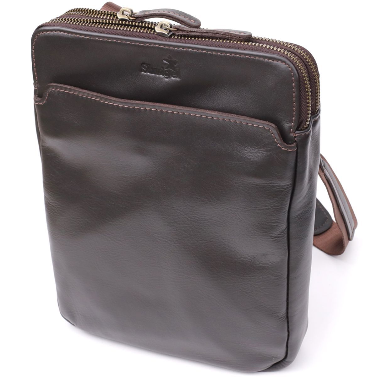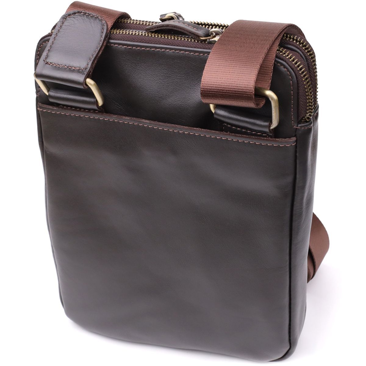 Вертикальна чоловіча сумка через плече із гладкої натуральної шкіри Shvigel 20868_1 коричнева