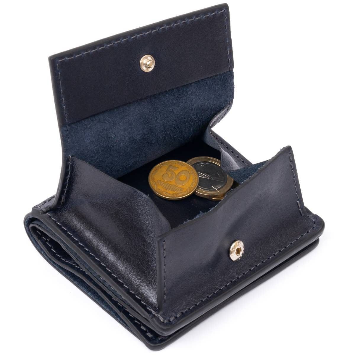 Вертикальное глянцевое портмоне с накладной монетницей Grande Pelle 11332 синее