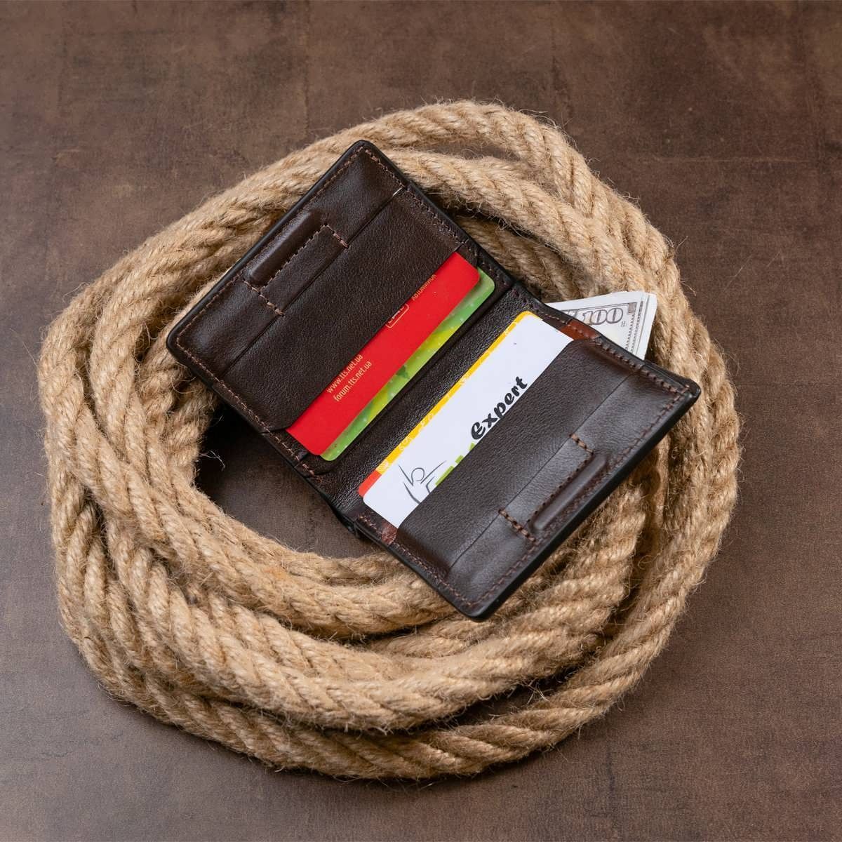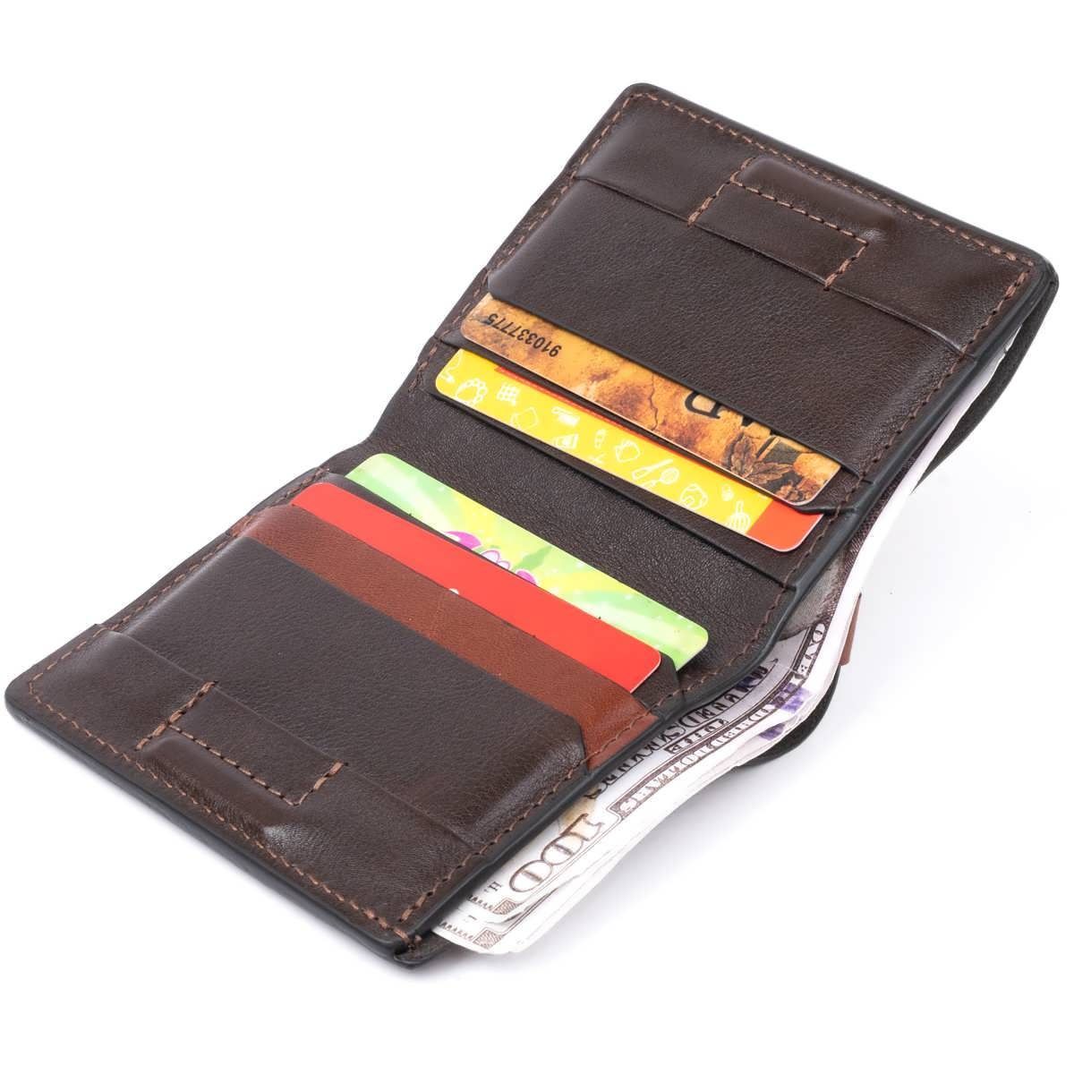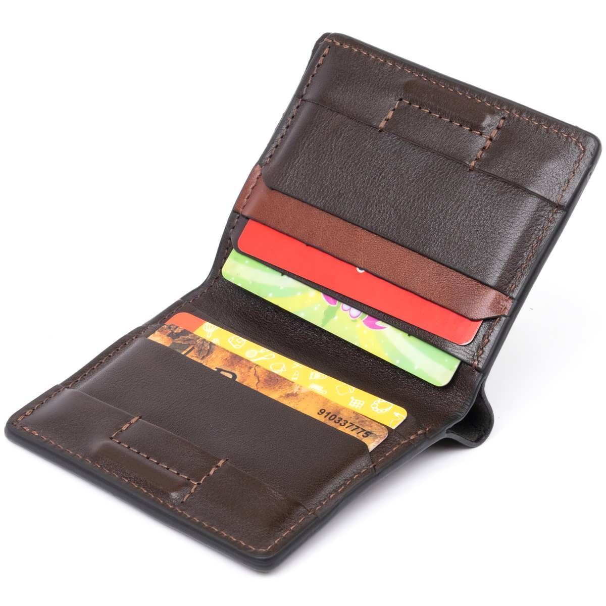 Маленький, но очень стильный аксессуар. Портмоне с ячейками для карточек из натуральной итальянской кожи высочайшего качества. Аксессуар имеет оригинальный дизайн со вставками коричневого цвета на светлый тон, что придает модели новизны и креативности. Аксессуар станет находкой для тех, кто хочет выделиться из толпы и подчеркнуть свою индивидуальность. Портмоне имеет одно отделение для купюр. Рекомендуем модель поклонникам аксессуаров с минимальным дизайном и тем, кто предпочитает не носить много наличных денег. Изделие упаковано в войлочный чехол. Портмон станет прекрасной идеей для подарка.