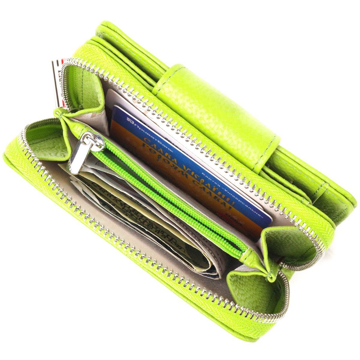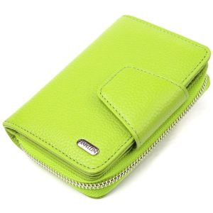 Вертикальное яркое портмоне с монетницей на молнии из натуральной кожи флотарий Canpellini 21603 салатовое