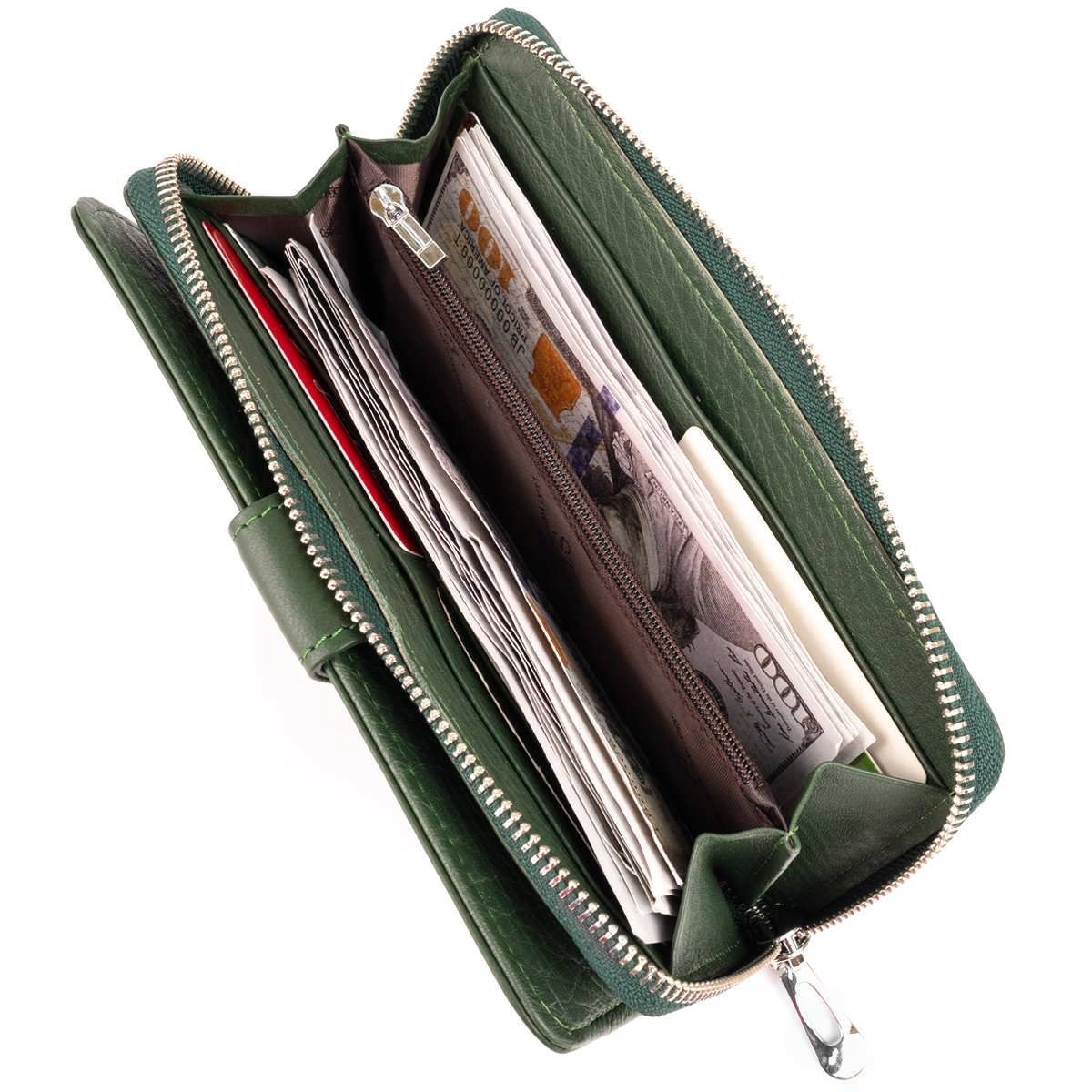 Вертикальный вместительный кошелек из кожи унисекс ST Leather 19304 зеленый