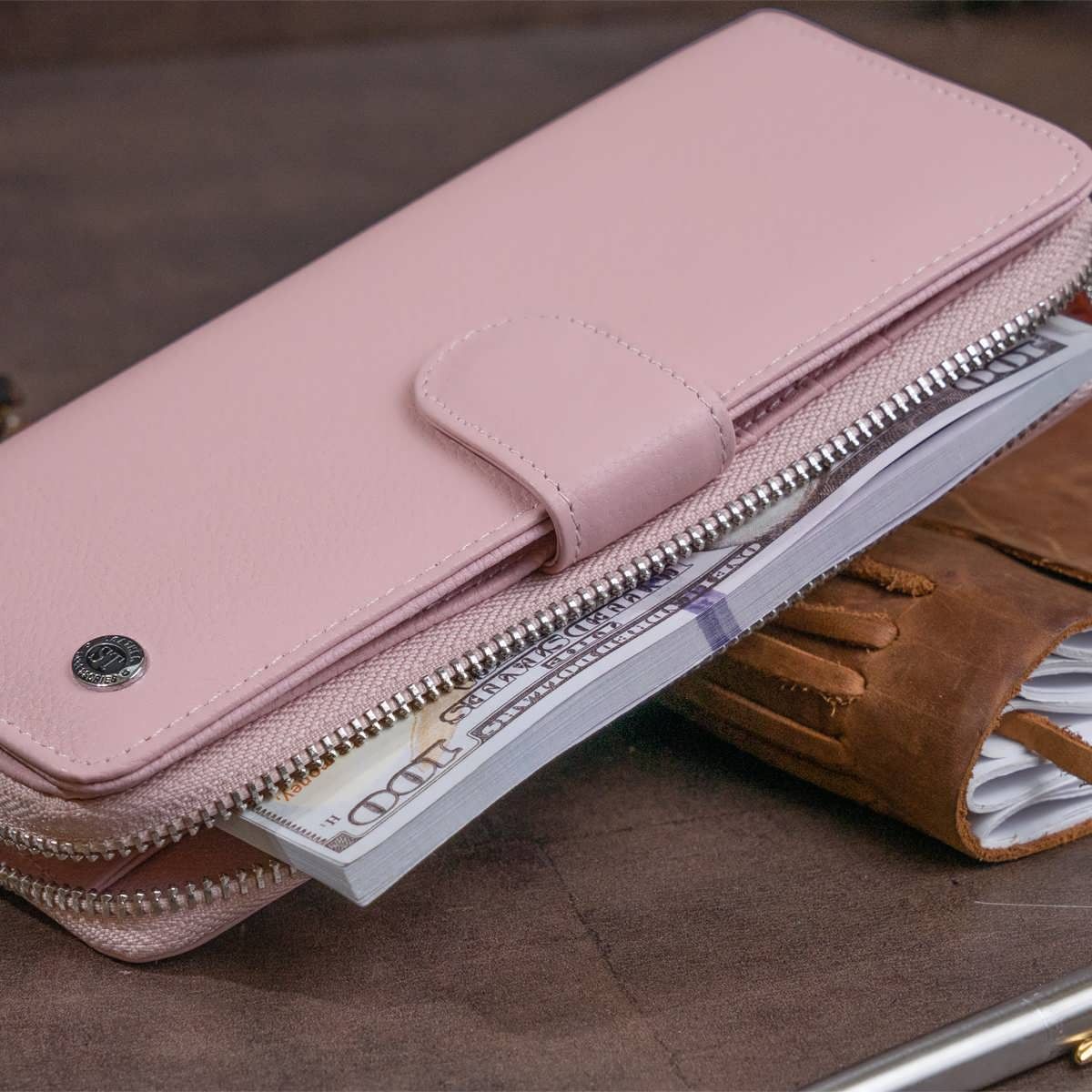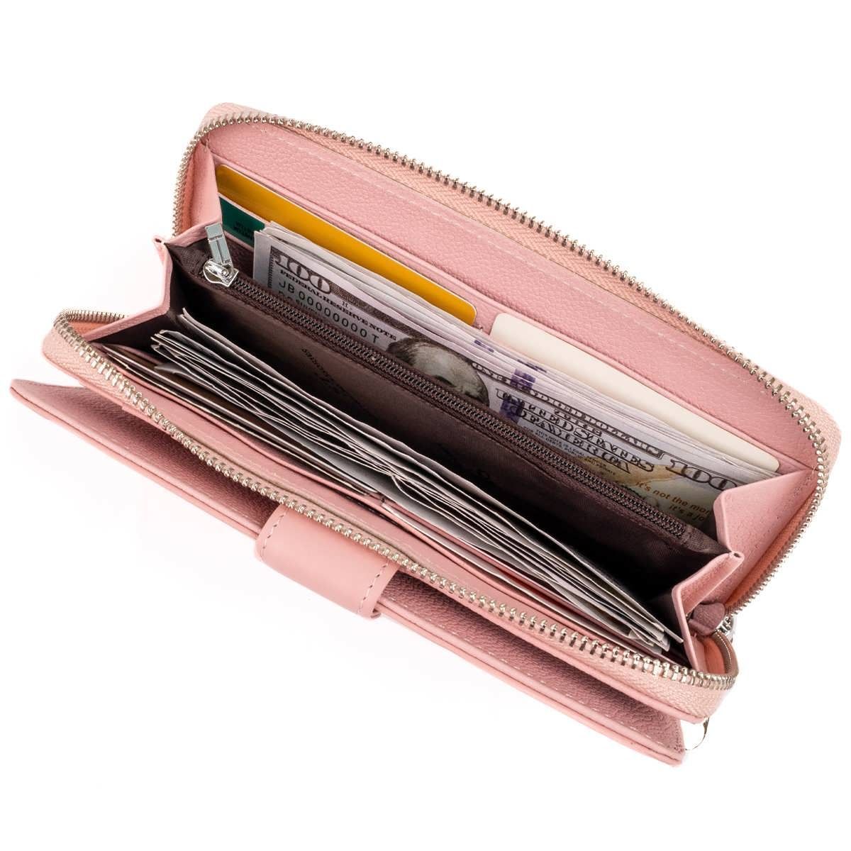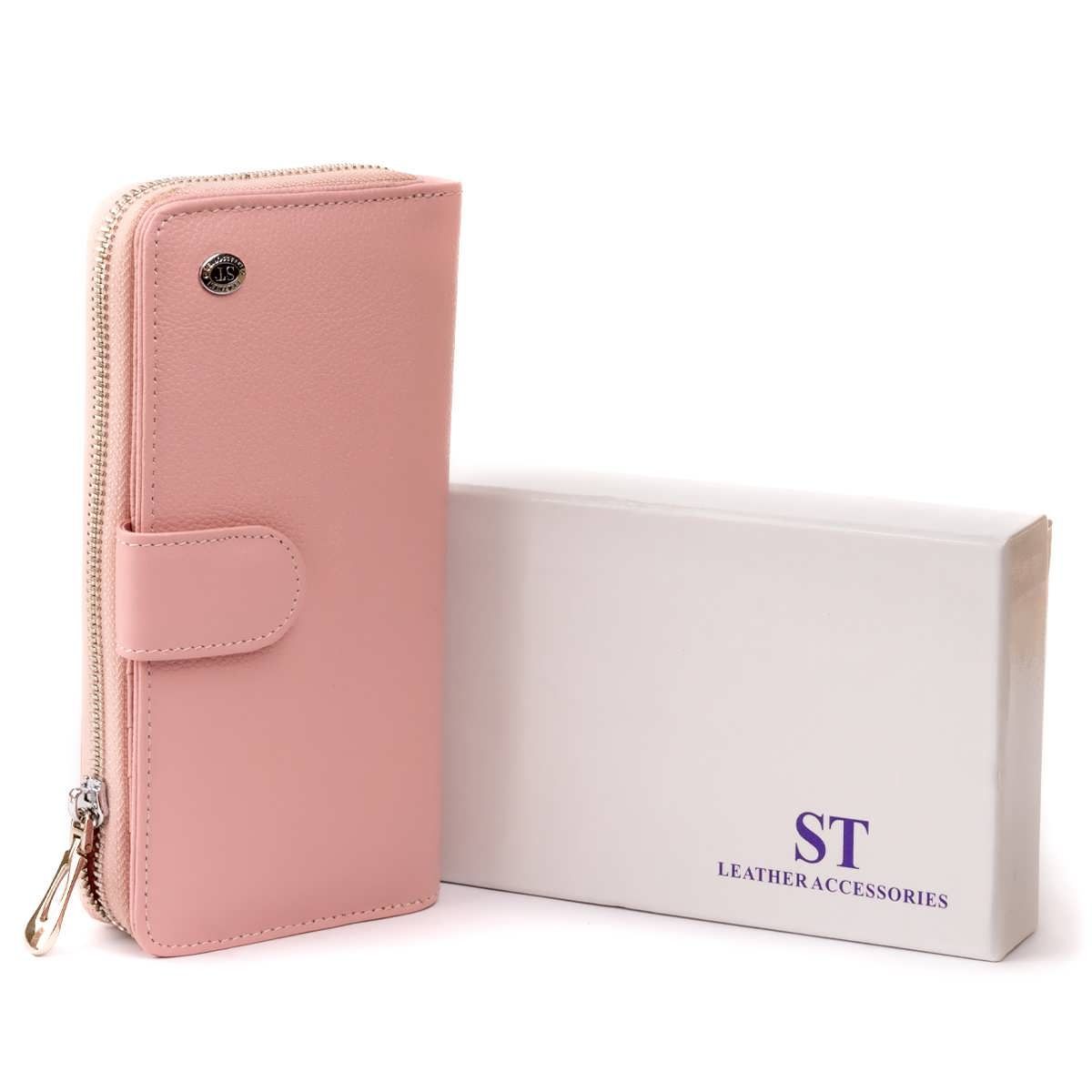 Вертикальный вместительный кошелек из кожи женский ST Leather 19303 розовый