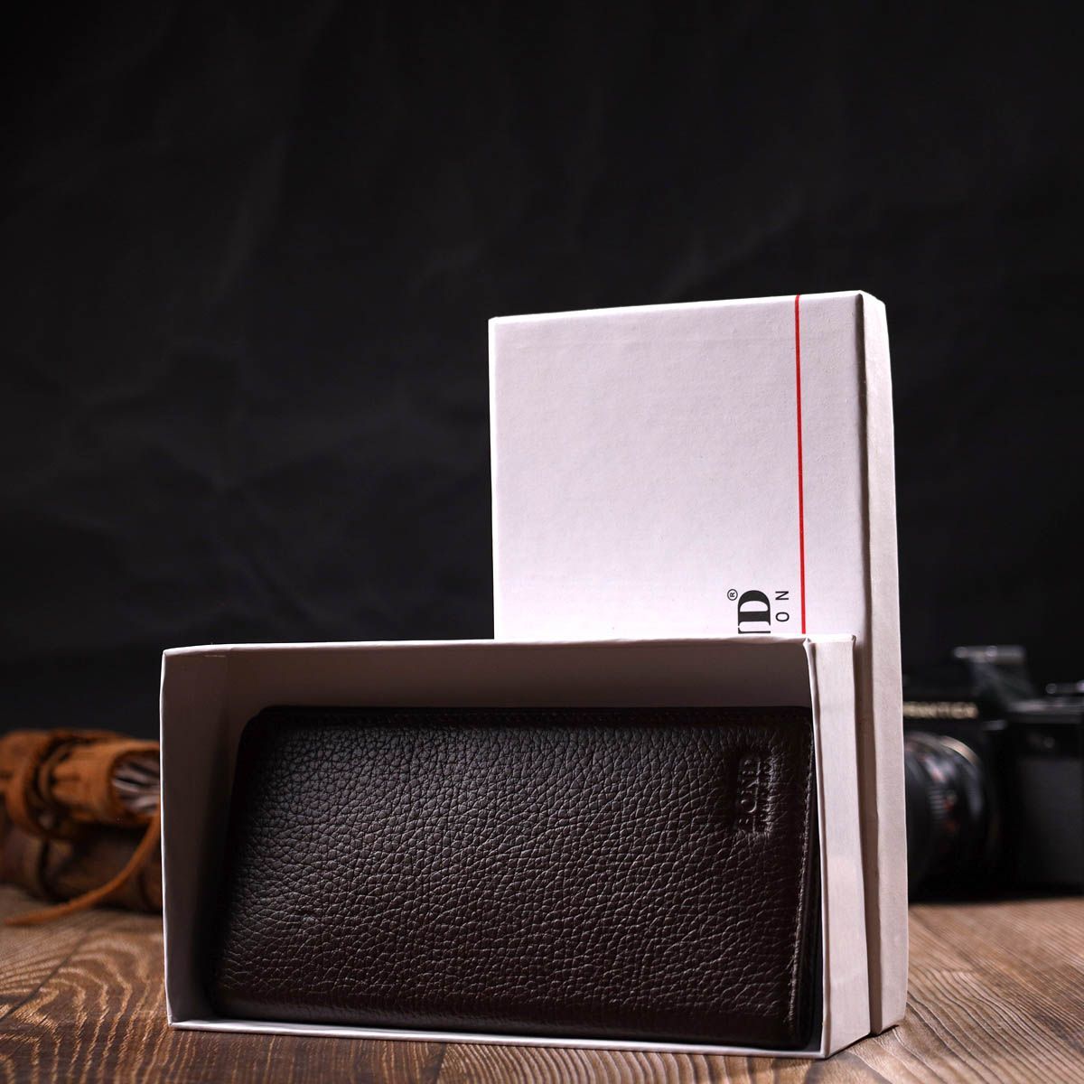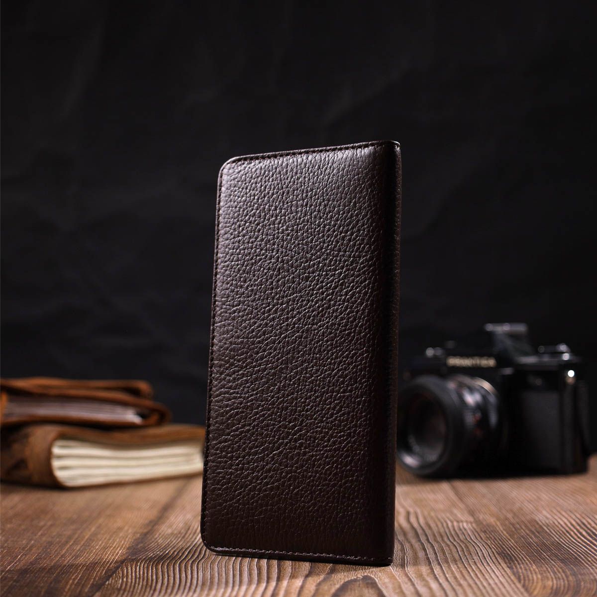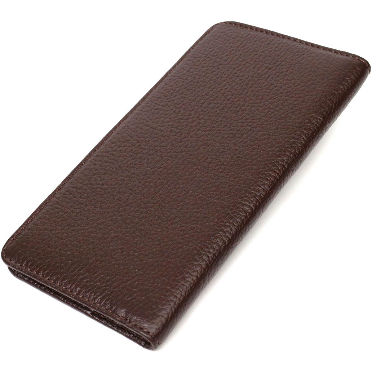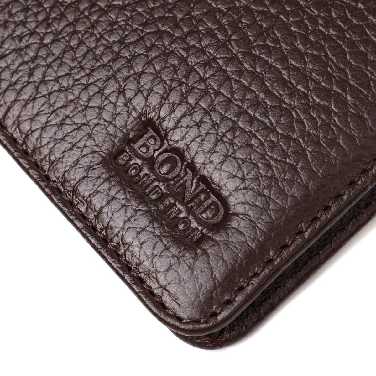 Вертикальный узкий мужской кошелек из натуральной зернистой кожи BOND 22052 коричневый