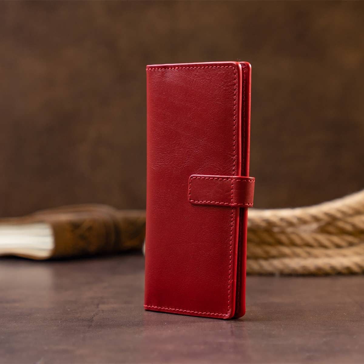 Вертикальный женский кошелек глянцевый Anet на кнопке Grande Pelle 11325 красный