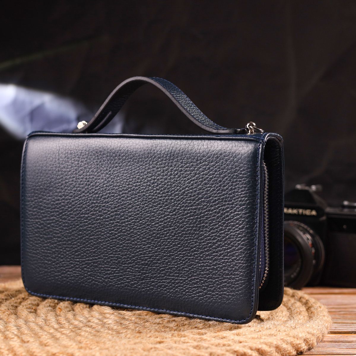 Отличная мужская барсетка на два отделения из натуральной зернистой кожи Canpellini 21568 синяя