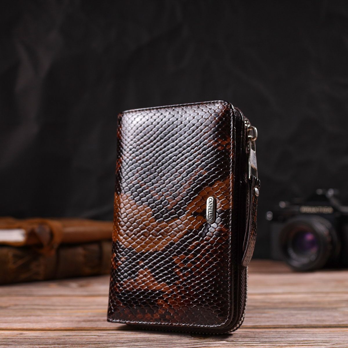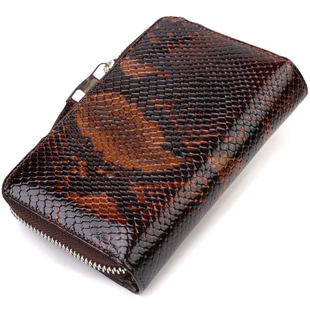 Отличное лакированное женское портмоне среднего размера из натуральной кожи с тиснением под змею. Canpellini 21714 разноцветное