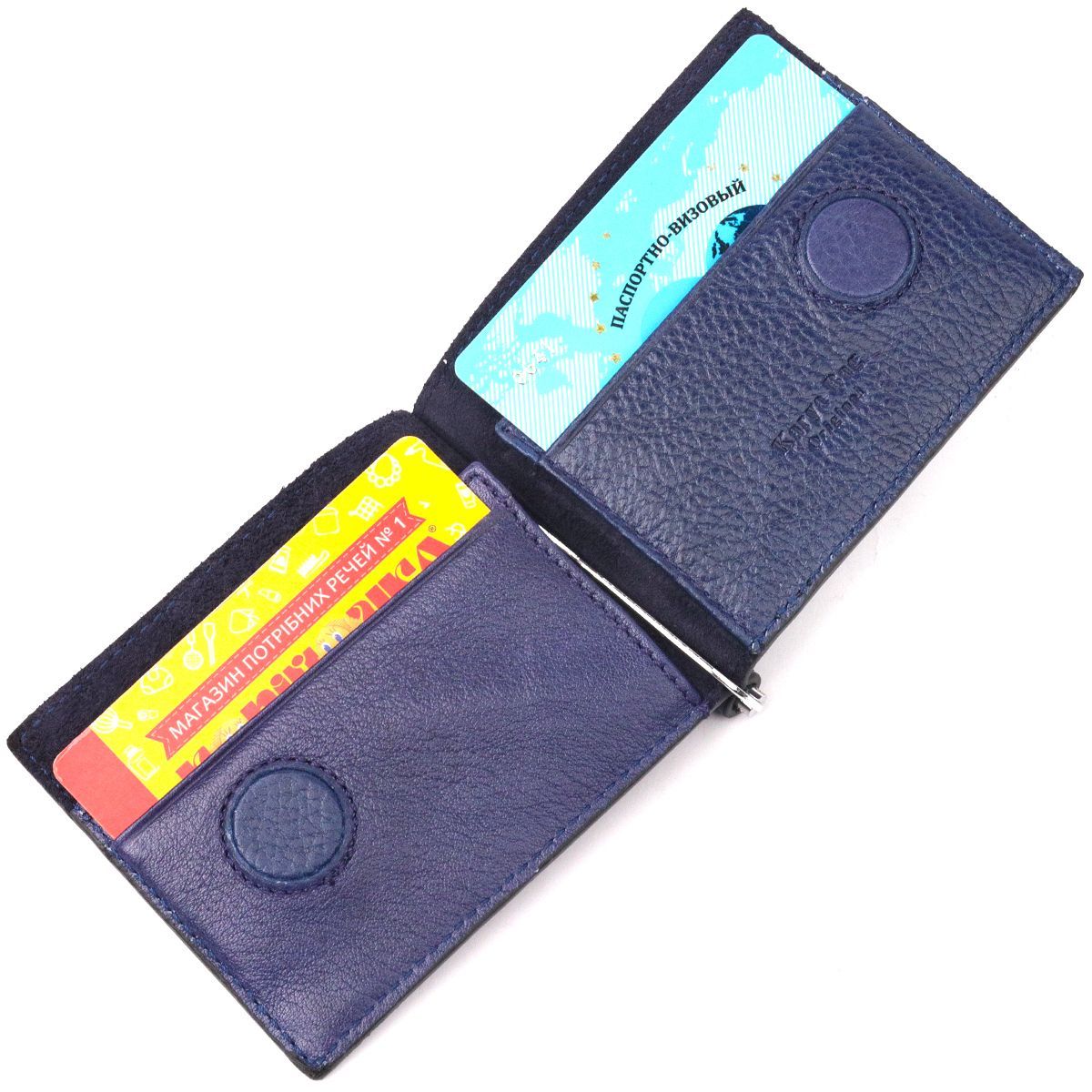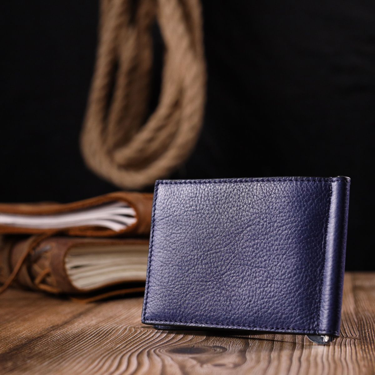 Отличный мужской зажим из зернистой кожи KARYA 21057 синий