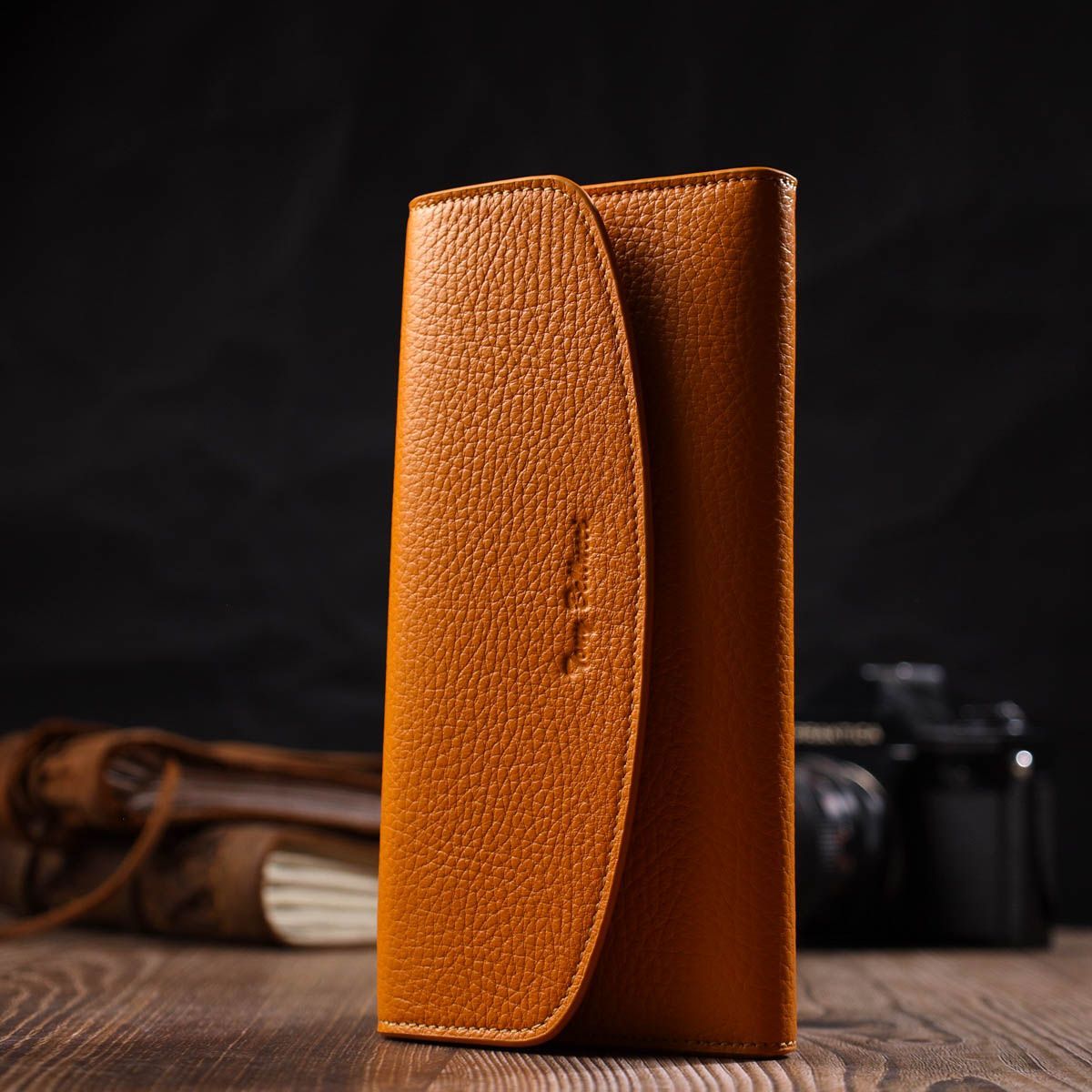 Модный женский кошелек из натуральной кожи флотарь, для которой характерна прочность, износостойкость и зернистая фактура. Аксессуар состоит из одного широкого отделения для купюр, двенадцати ячеек для пластиковых карточек, одного близлежащего кармана и монетницы на молнии. В изделии использована качественная фурнитура золотистого цвета. Закрывается кошелек клапаном на кнопку. Покупая этот кожаный кошелек, Вы не только приобретаете стильную вещь, но и получаете качественный аксессуар, который прослужит не один год.