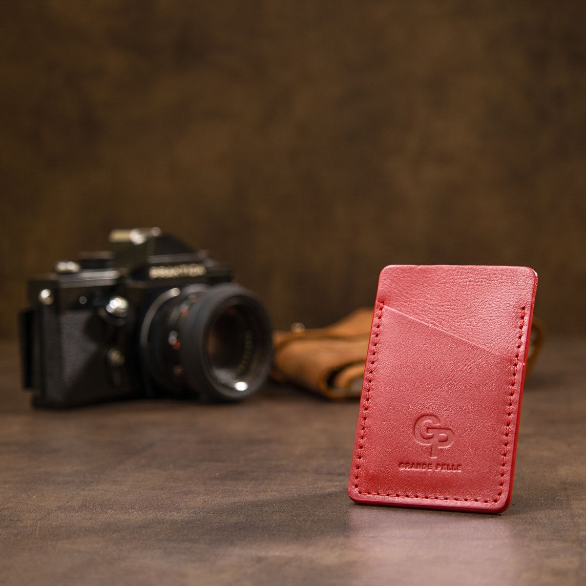 Винтажный кожаный картхолдер Grande Pelle 11505 красный