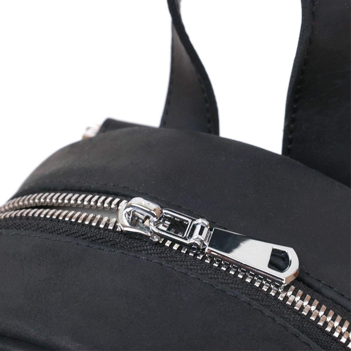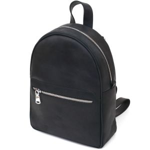 Практичный женский рюкзак в стильном и модном дизайне от украинского производителя. Выполнена эта модель из натуральной высококачественной кожи с улучшенными показателями износостойкости. Цвет – универсальный черный, что практически, фактура – гладкая матовая с винтажными нотками.