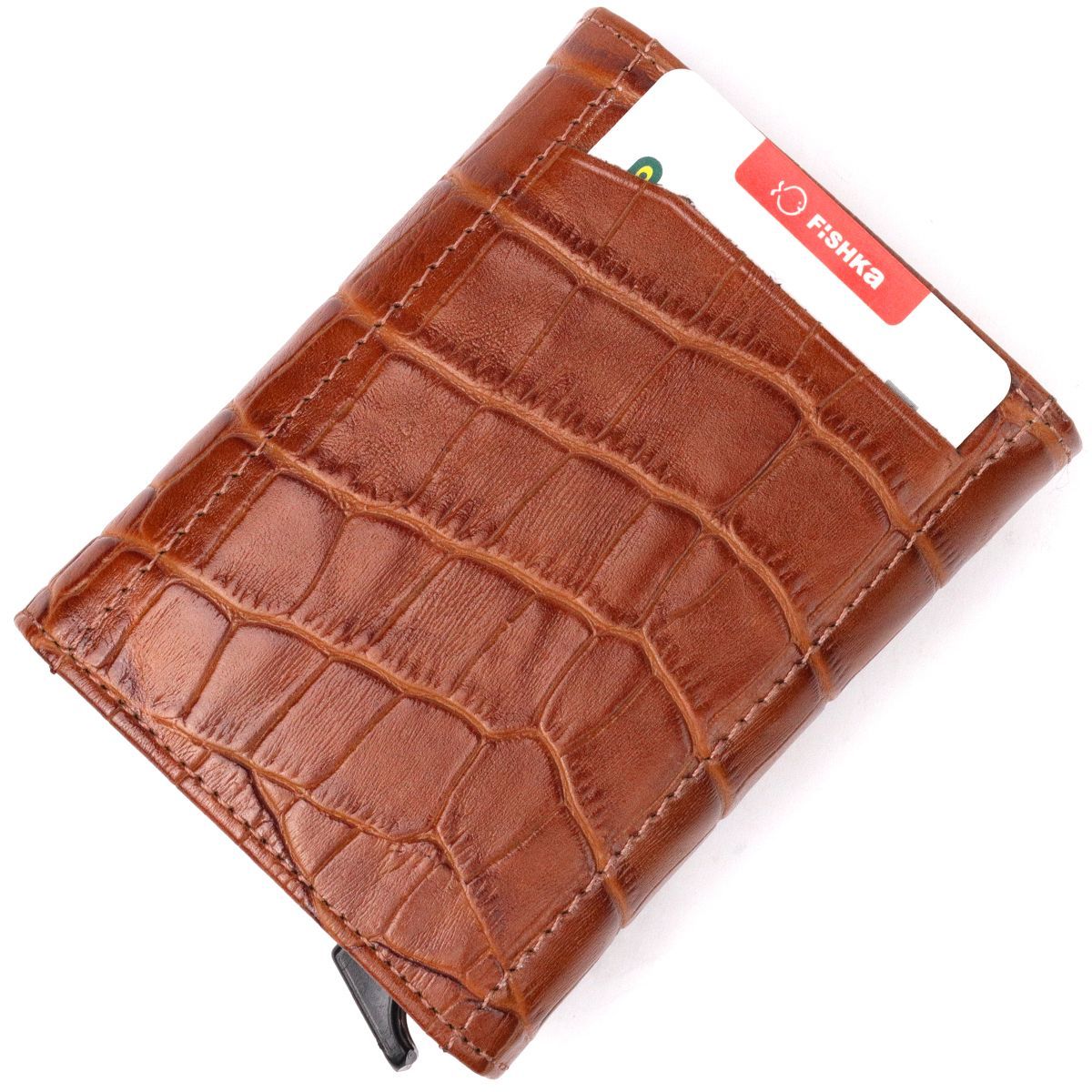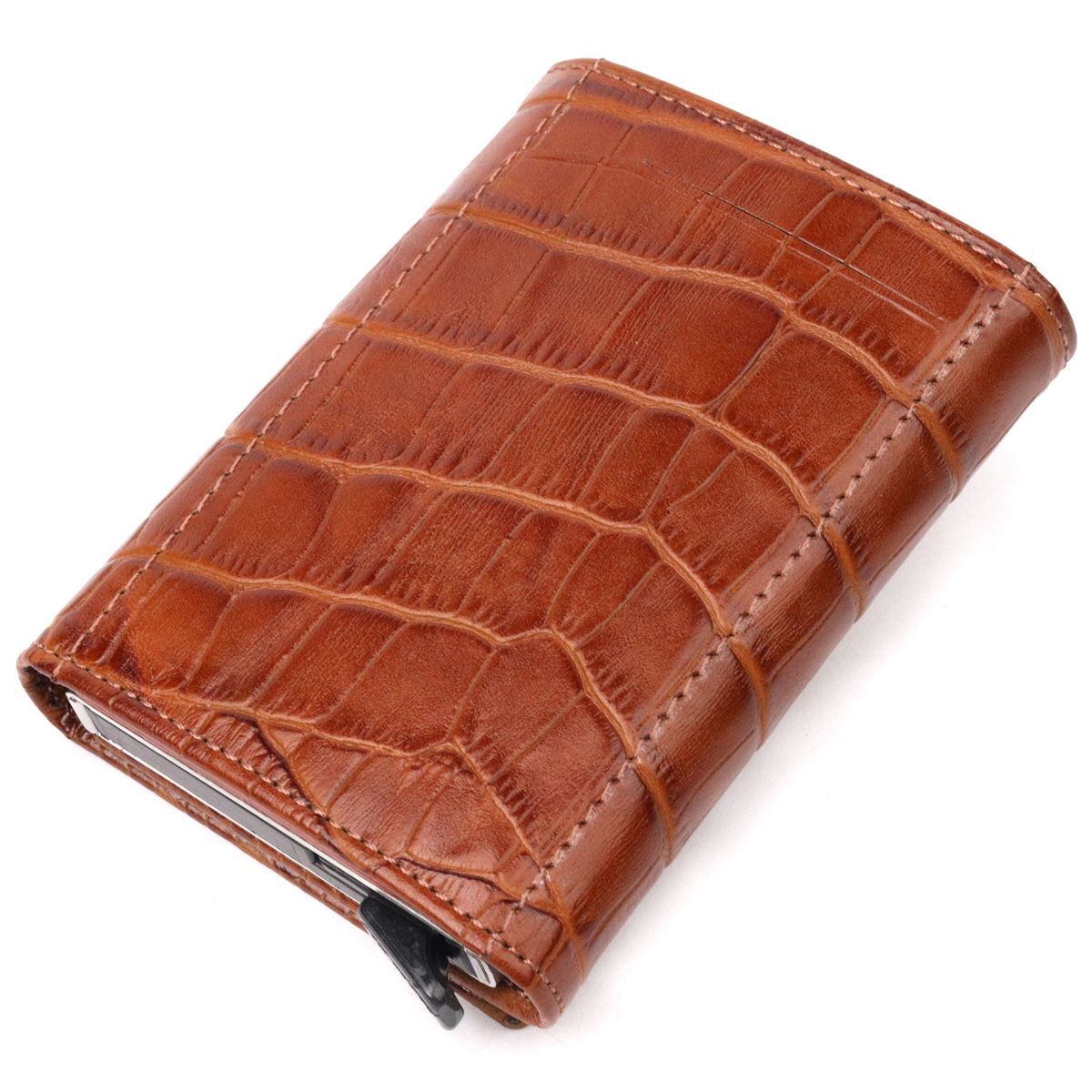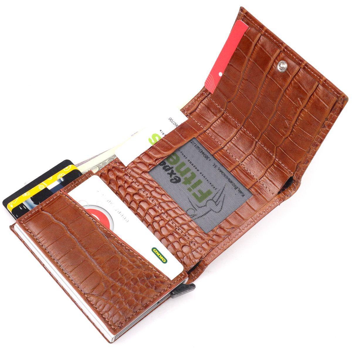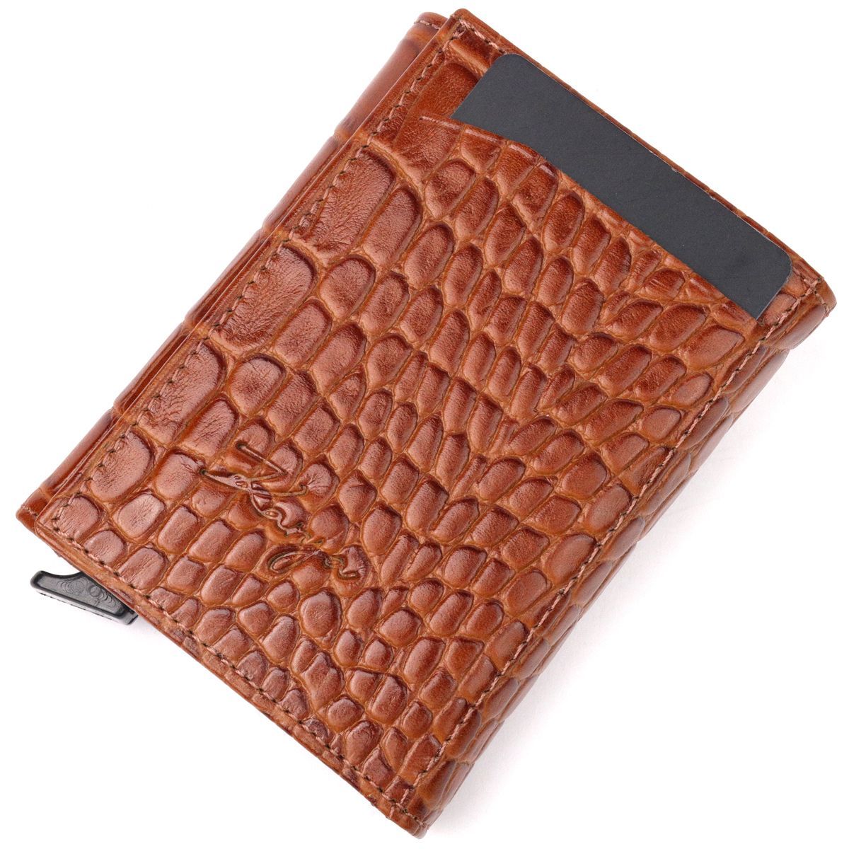 Визитница из натуральной фактурной кожи под крокодила KARYA 20986 коричневая