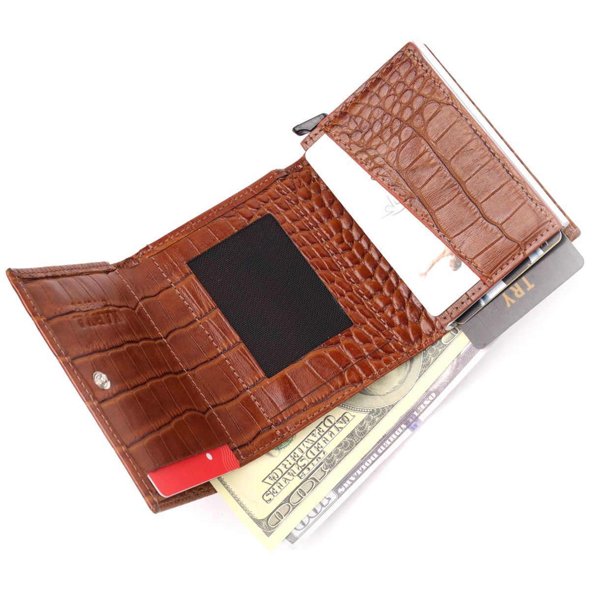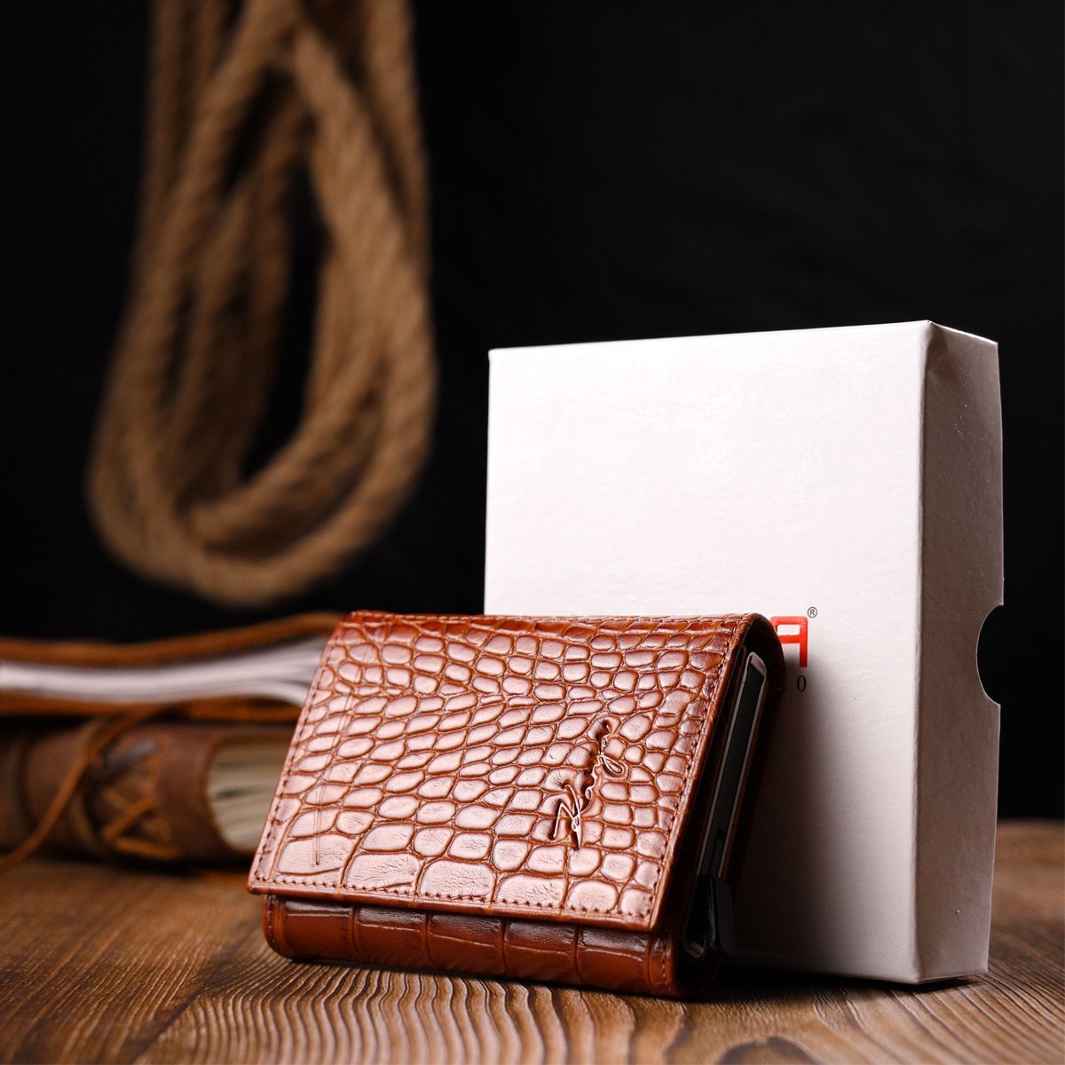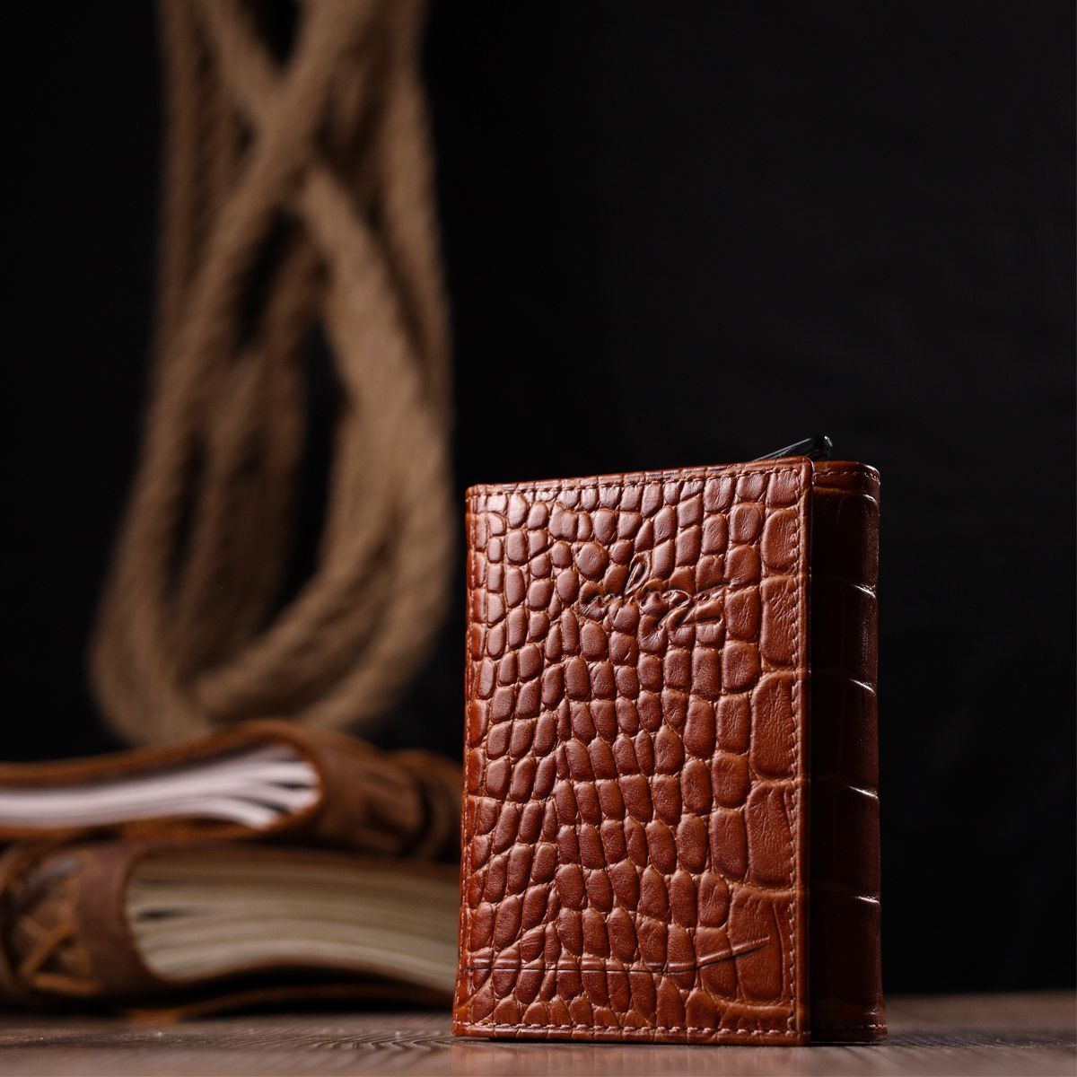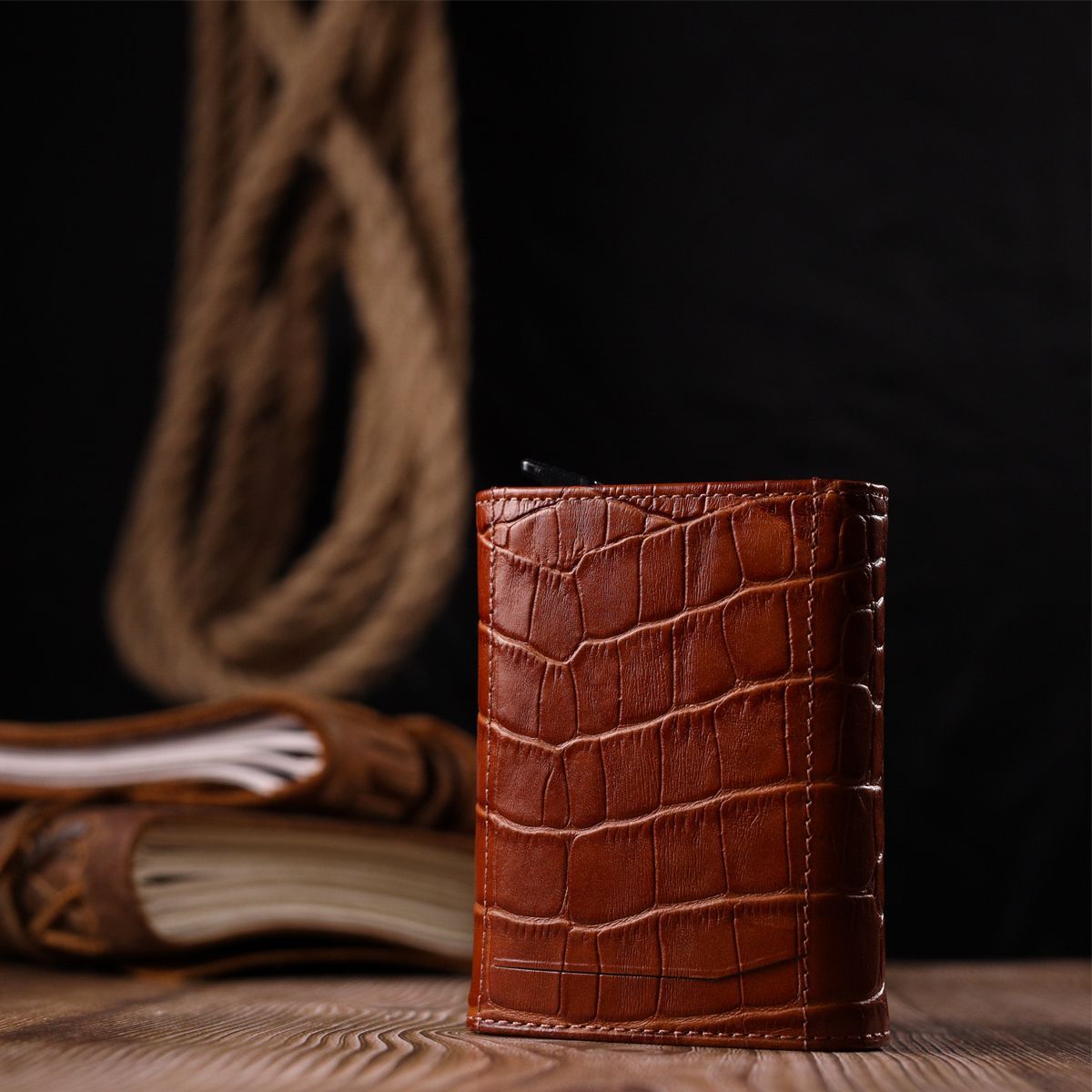 Визитница из натуральной фактурной кожи под крокодила KARYA 20986 коричневая