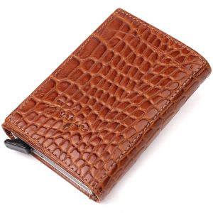 Отличный картхолдер коричневого цвета из натуральной кожи, с тиснением под крокодила, предназначен для хранения банковских и дисконтных карт и небольшого количества наличных денег. Имеет лаконичный дизайн, отлично ложится в руку, помещается в карман, а также в любую сумку. Кожа мягкая, приятная на ощупь. Механизм работает надежно и удобен в использовании; карточки хорошо закреплены в аксессуаре. Отличная идея для подарка близкому человеку.