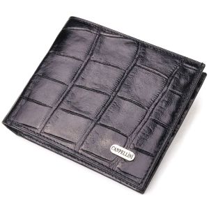 Качественный кошелек для мужчин в два сложения из натуральной фактурной кожи с тиснением под крокодила Canpellini 21584 черный