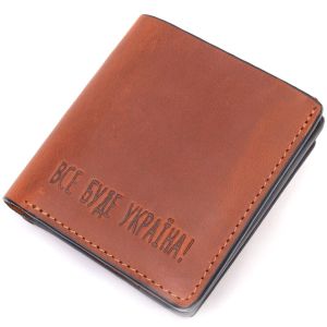 Прекрасный кожаный кошелек в светло-коричневом цвете с патриотической надписью "Все будет Украина". Изделие сшито из качественной гладкой кожи, с высокими показателями износостойкости. Портмоне имеет два больших отделения для купюр всех номиналов, а также достаточное количество отделений для карточек и монетницу, застегивается изделие на надежный магнит. Кожаный кошелек станет отличным подарком на все случаи жизни.