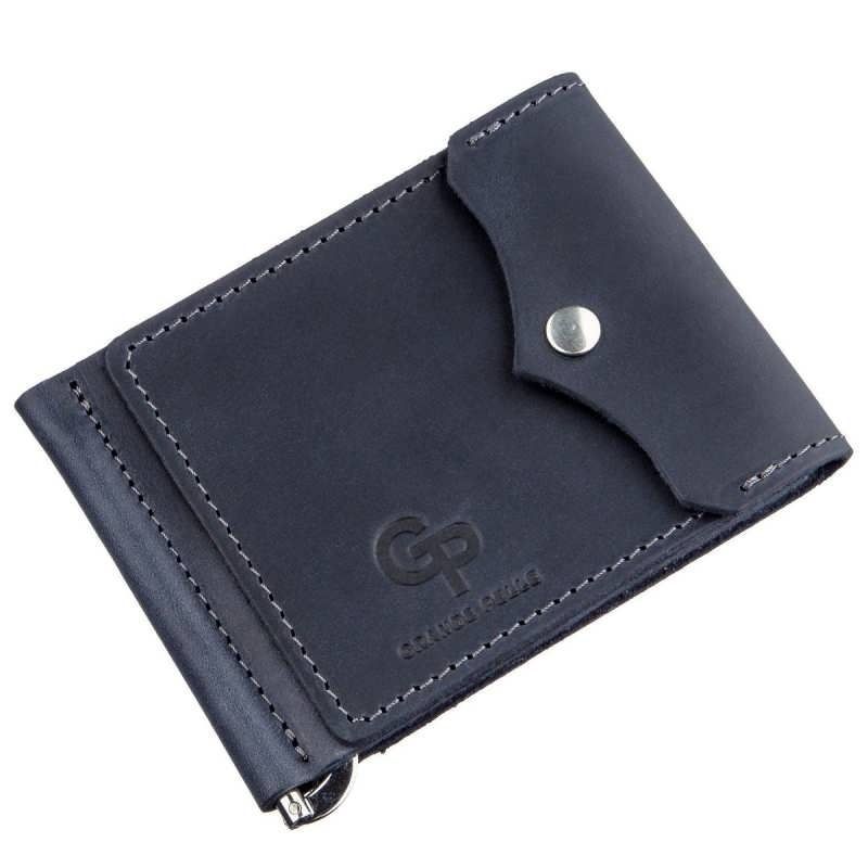 Якісний затискач із натуральної шкіри Grande Pelle 11198 синій