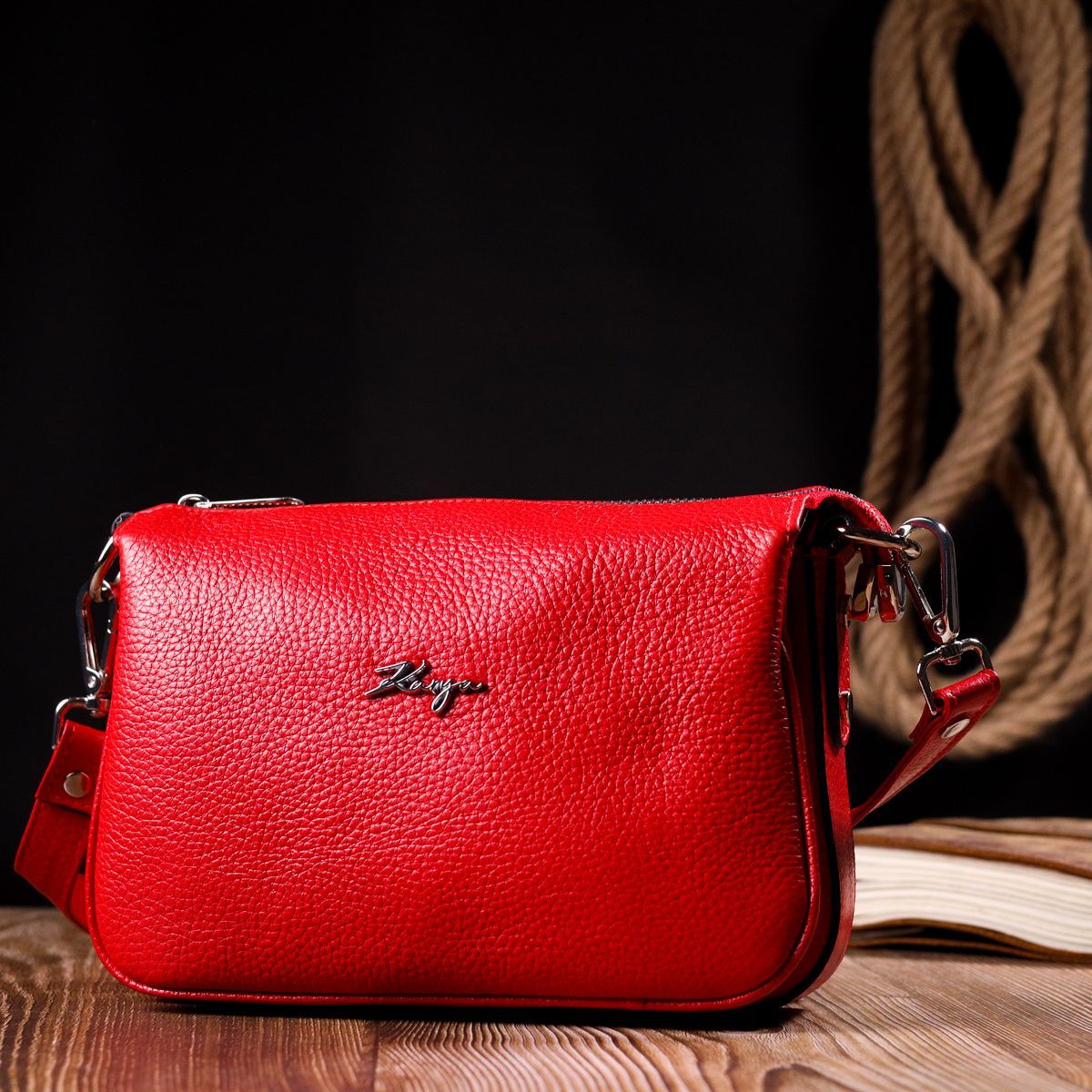 Яркая женская сумка на плечо KARYA 20845 кожаная красная