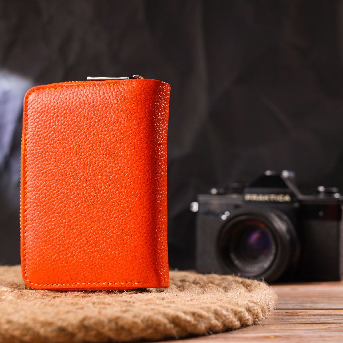 Яркий вертикальный портмоне для женщин с монетницей на молнии из натуральной кожи флотарий Canpellini 21602 оранжевое