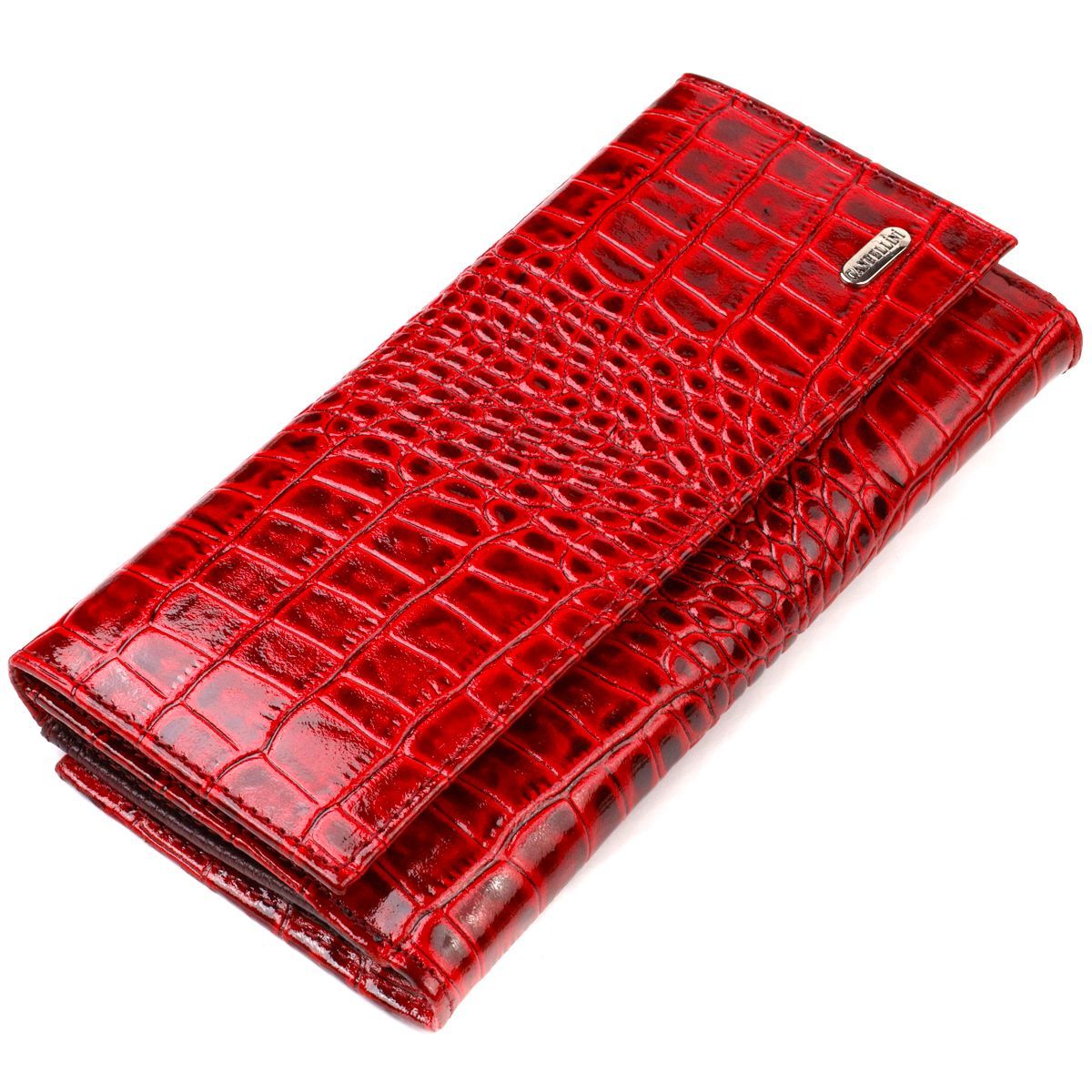 Яркое женское портмоне из натуральной кожи с тиснением под крокодила Canpellini 21852 красный