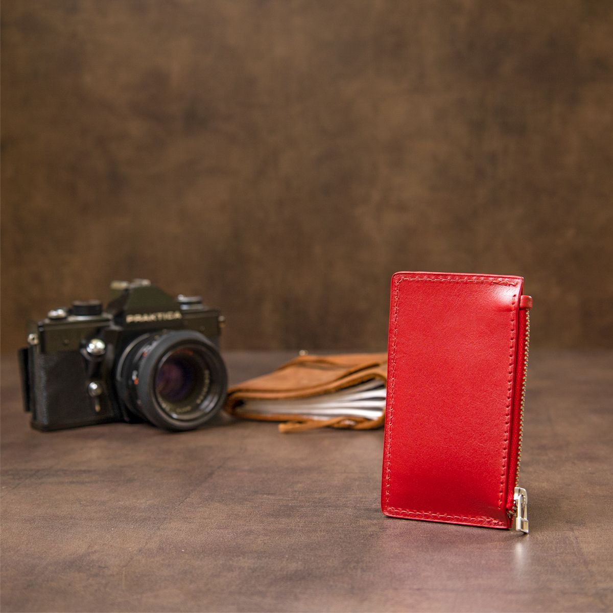Компактный и практичный картхолдер для самых необходимых карт или визиток. Выполнена из натуральной мягкой кожи высокого качества украинским производителем. Есть очень удобный карман на молнии, который можно использовать для хранения мелочей или других карт. Цвет – глубокий красный с серебряной фурнитурой.