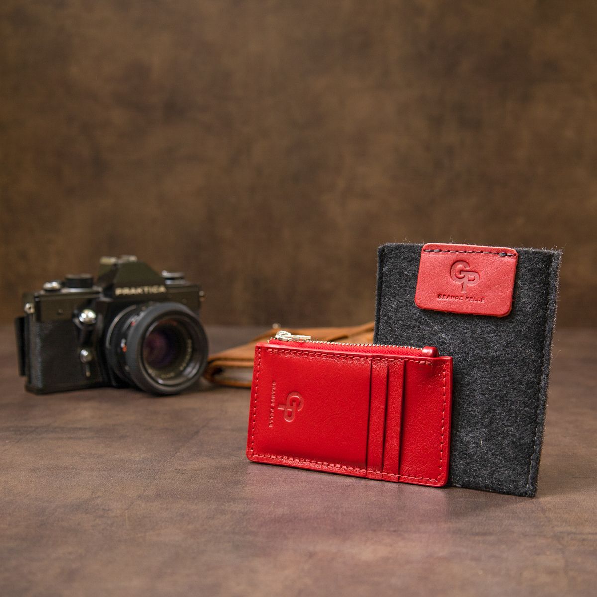 Яркий кожаный картхолдер Grande Pelle 11497 красный