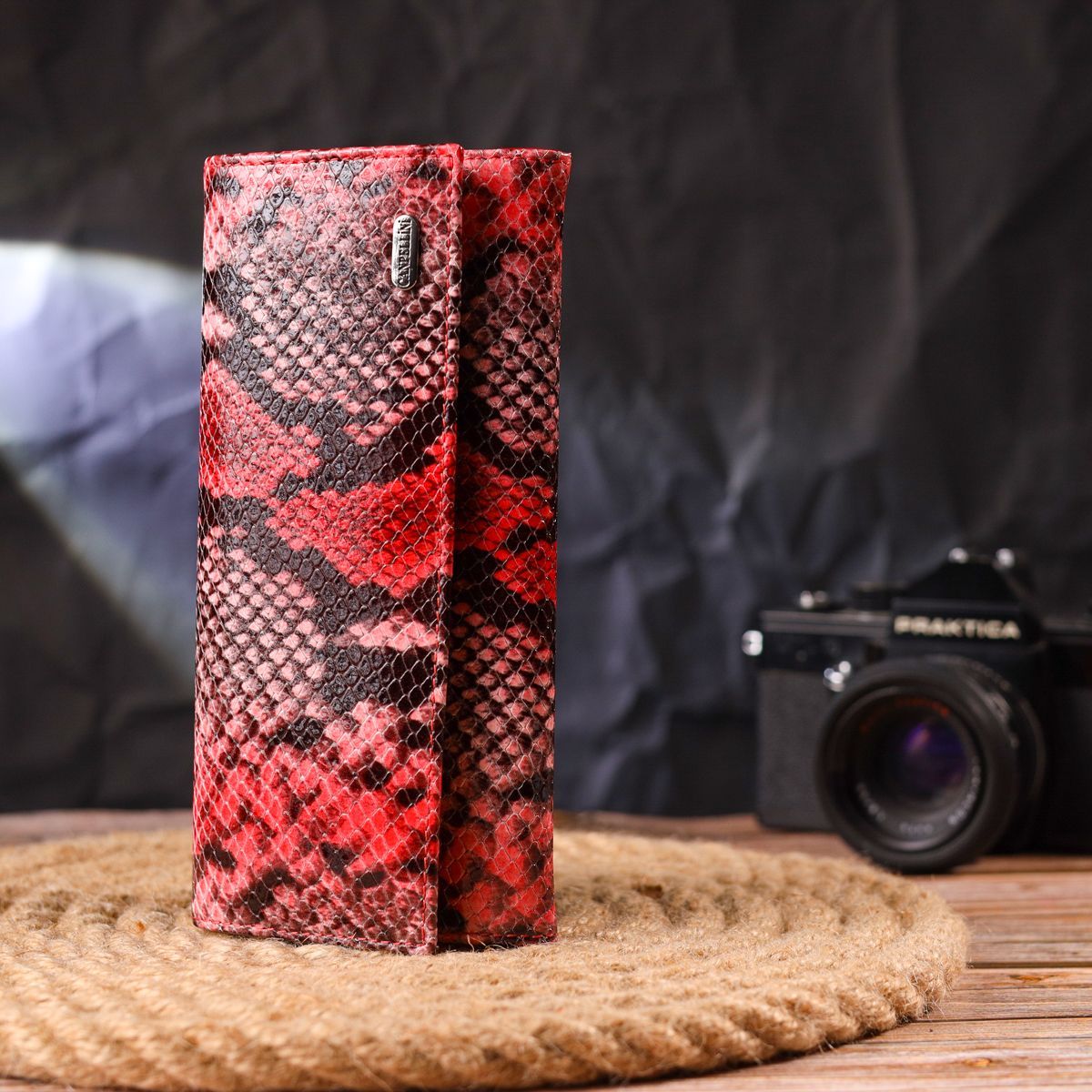 Яркий женский кошелек из натуральной фактурной кожи с тиснением под змею Canpellini 21627 разноцветный