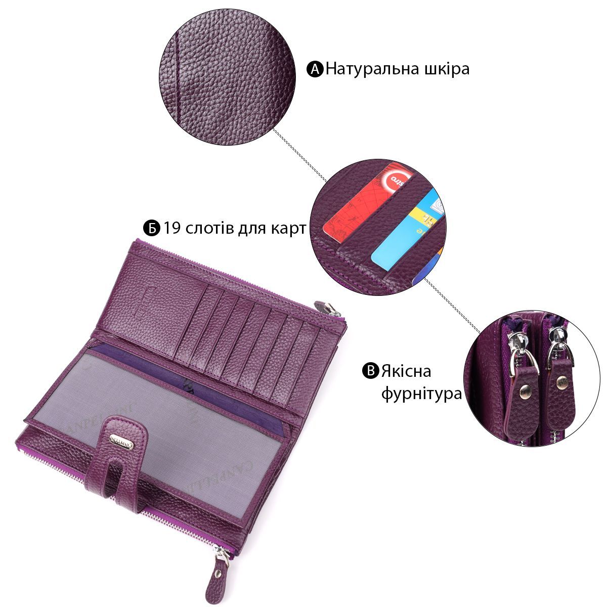 Яскравий жіночий гаманець з натуральної шкіри CANPELLINI 20873_1 фіолетовий
