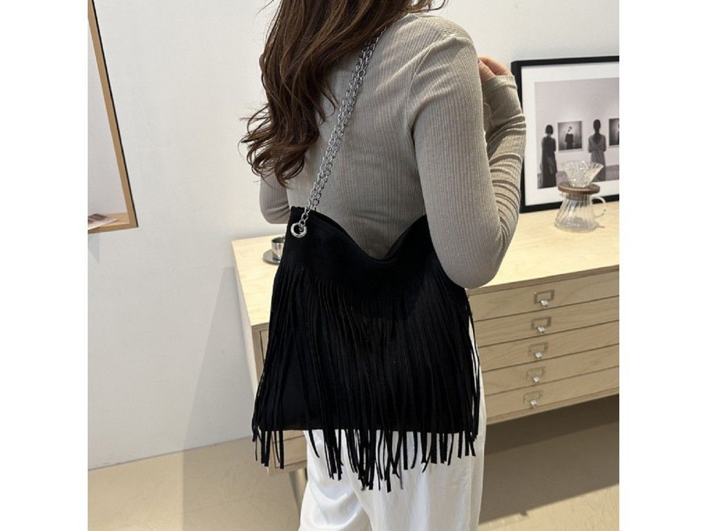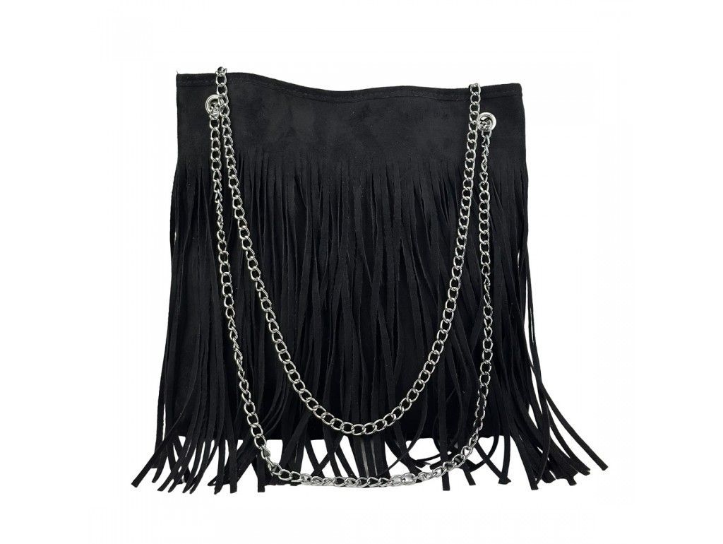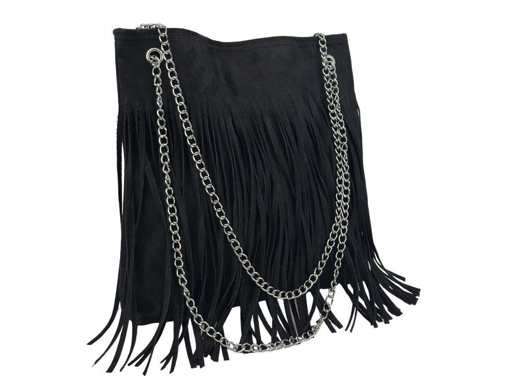 Замшева сумочка на ланцюжку з бахромою Lilly P2-8206A чорна