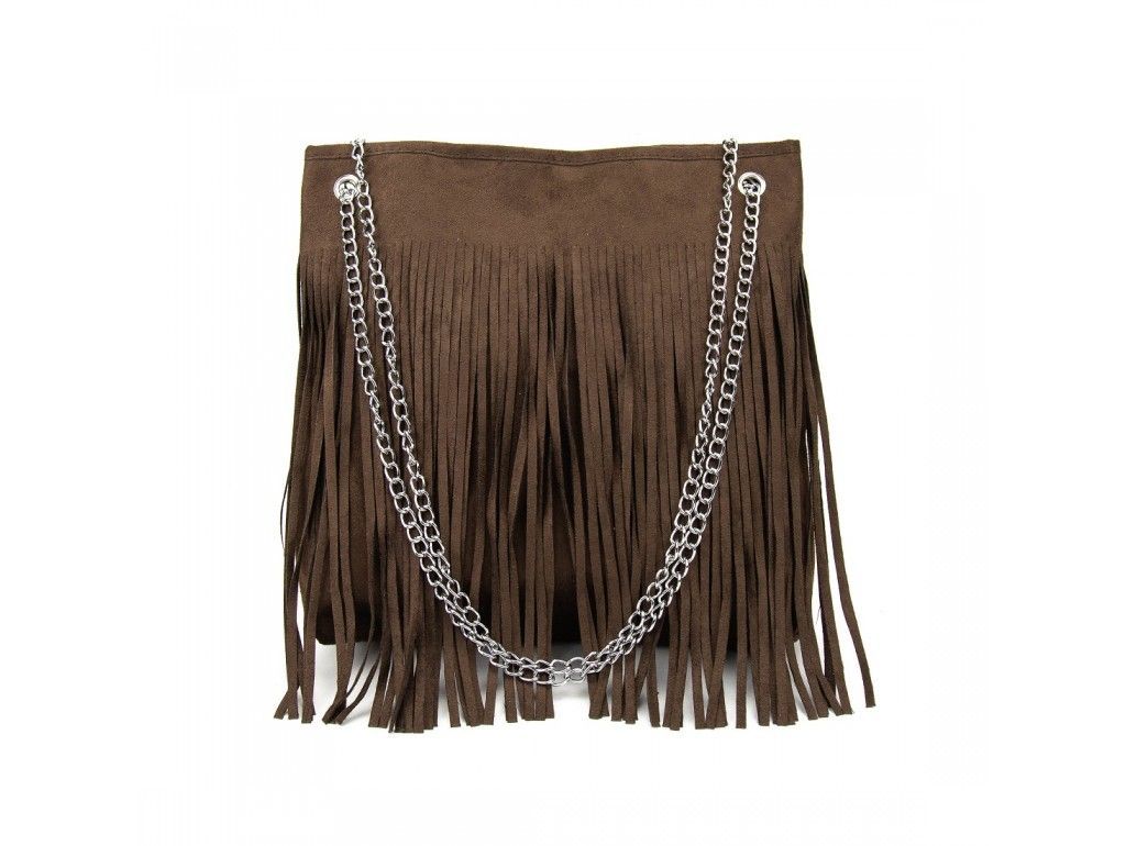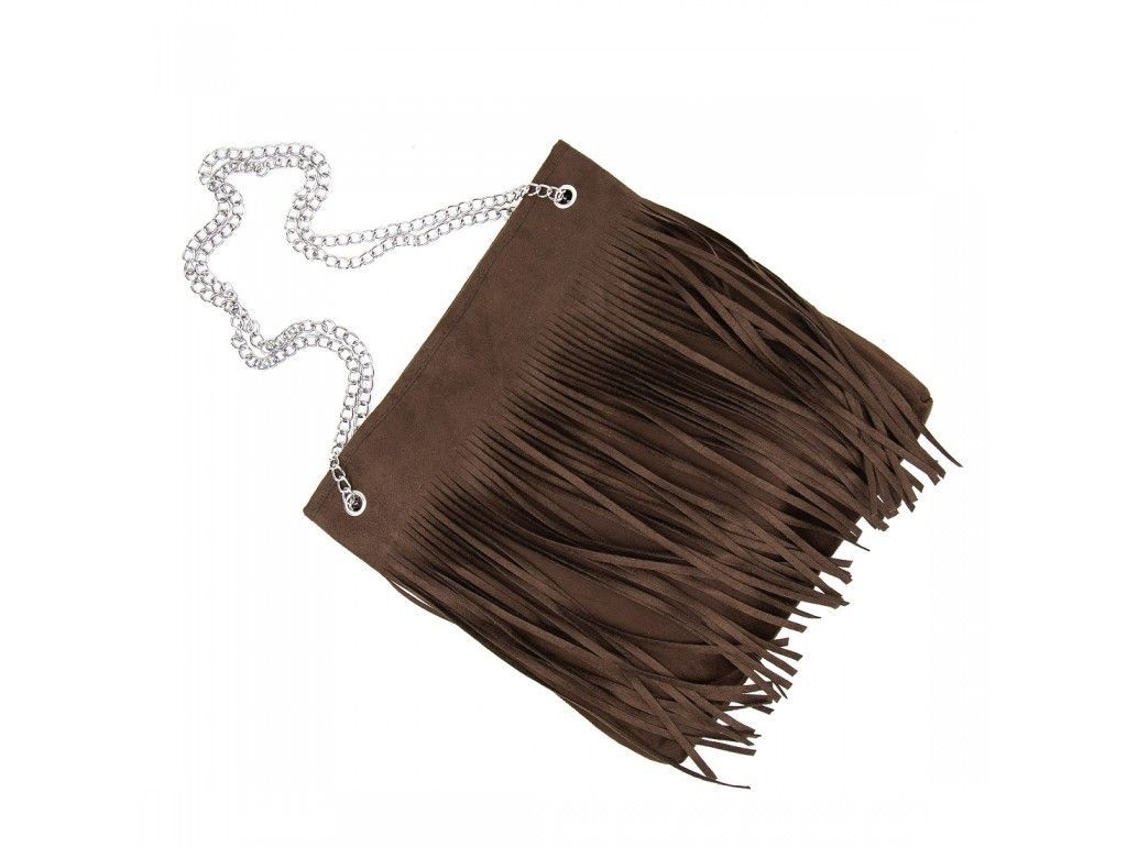 Замшева сумочка на ланцюжку з бахромою Lilly P2-8206DB темно коричнева