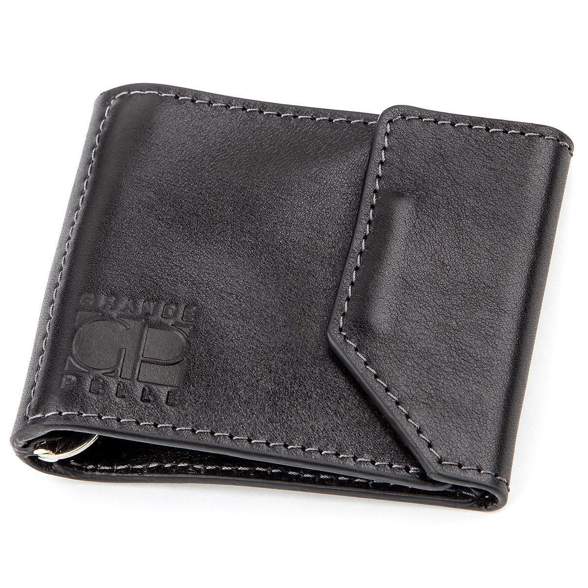 Затискач для грошей з італійської шкіри Grande Pelle 11149 чорний