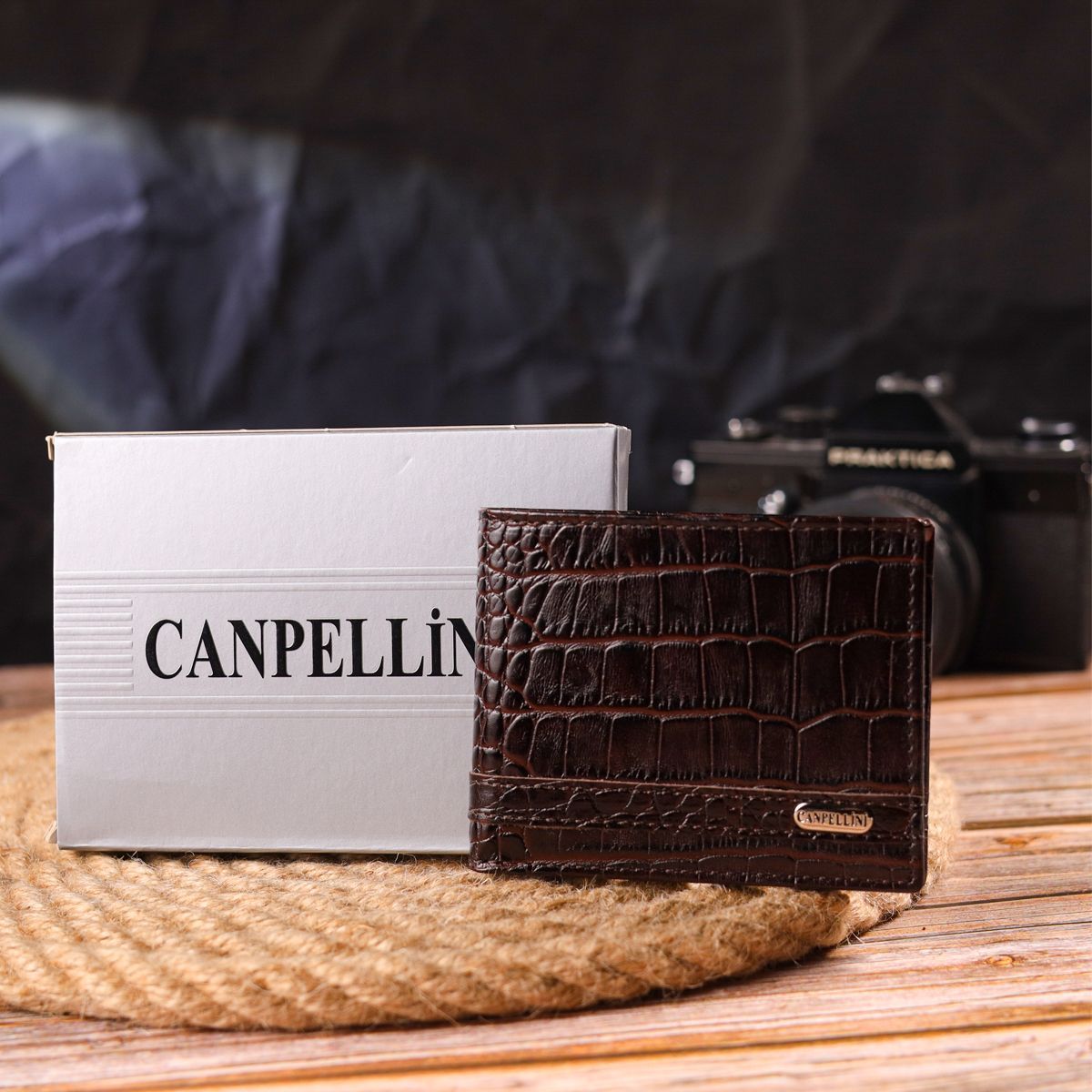 Зажим из натуральной фактурной кожи Canpellini 21519 коричневый