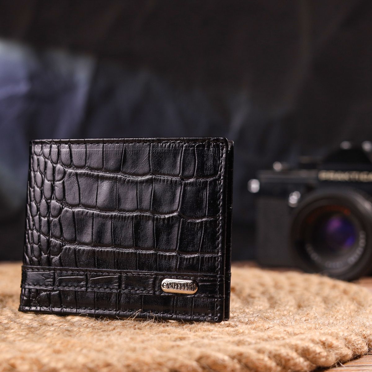 Зажим из натуральной фактурной кожи Canpellini 21520 черный
