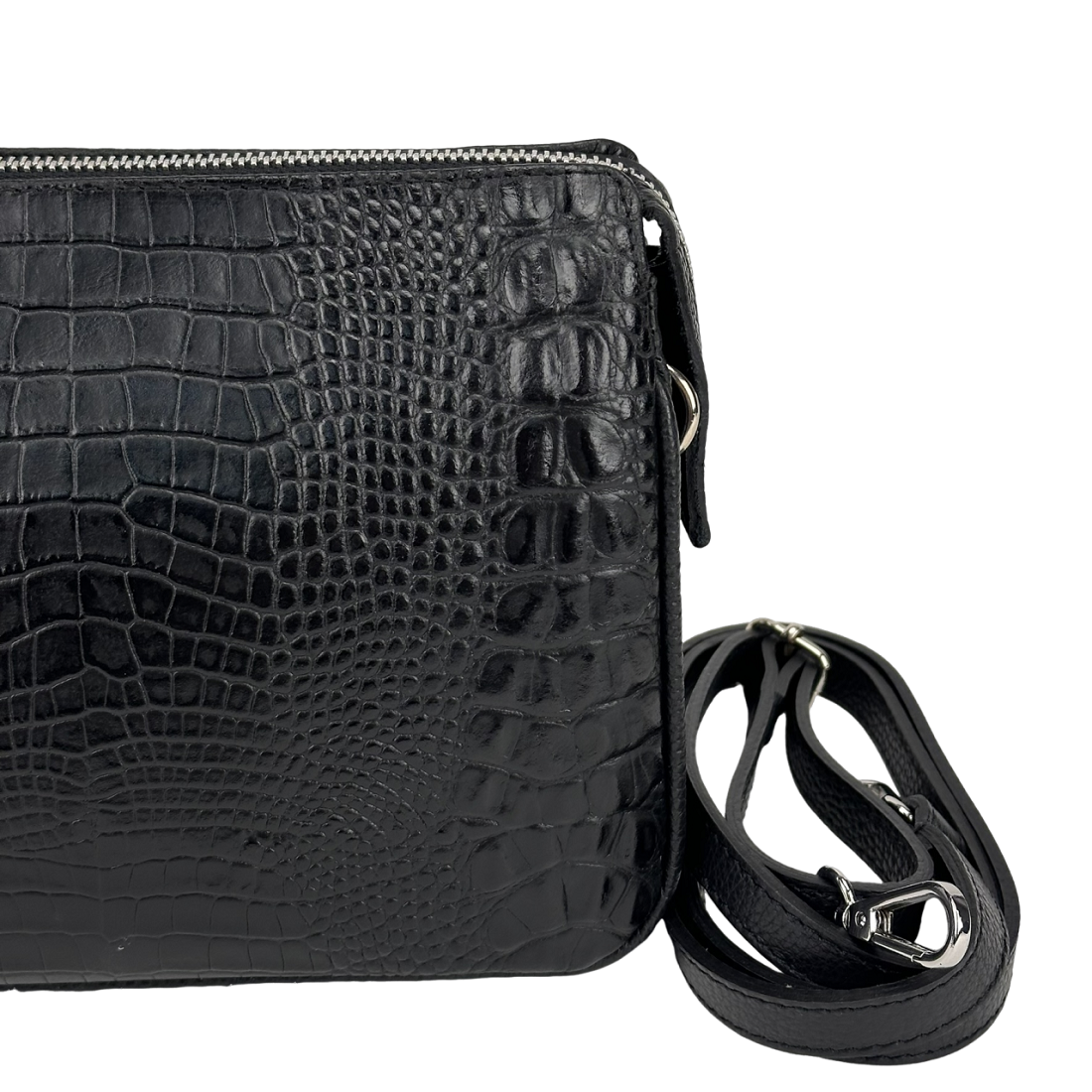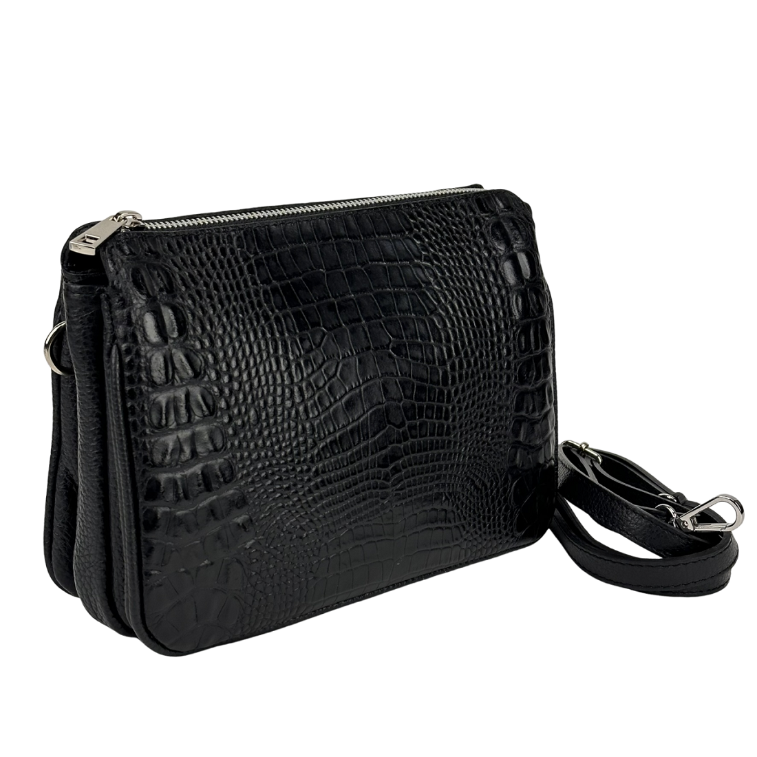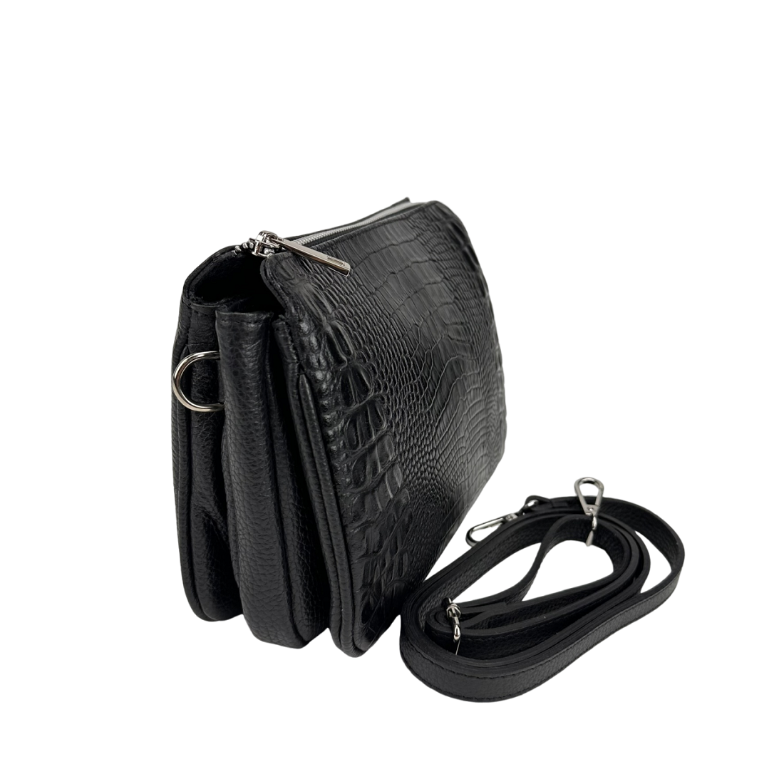 Жіноча каркасна сумочка з тісненням під репітилію Firenze Italy F-IT-9871A чорна