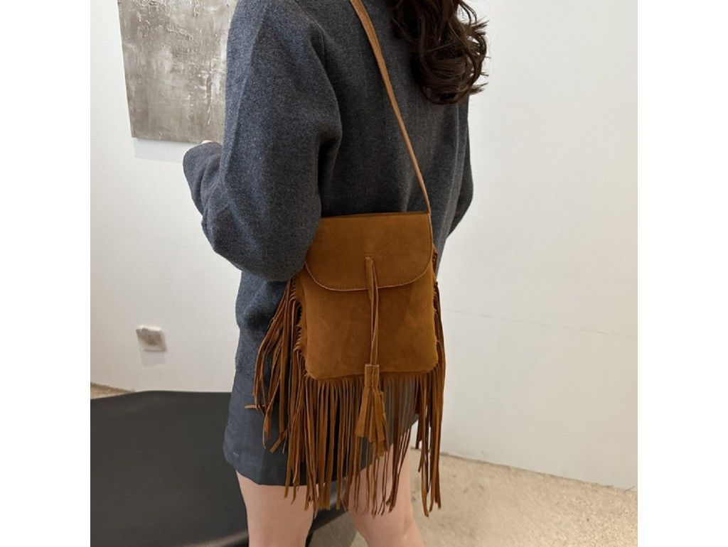 Жіноча стильна сумка з бахромою Lilly P2-9333C коричнева