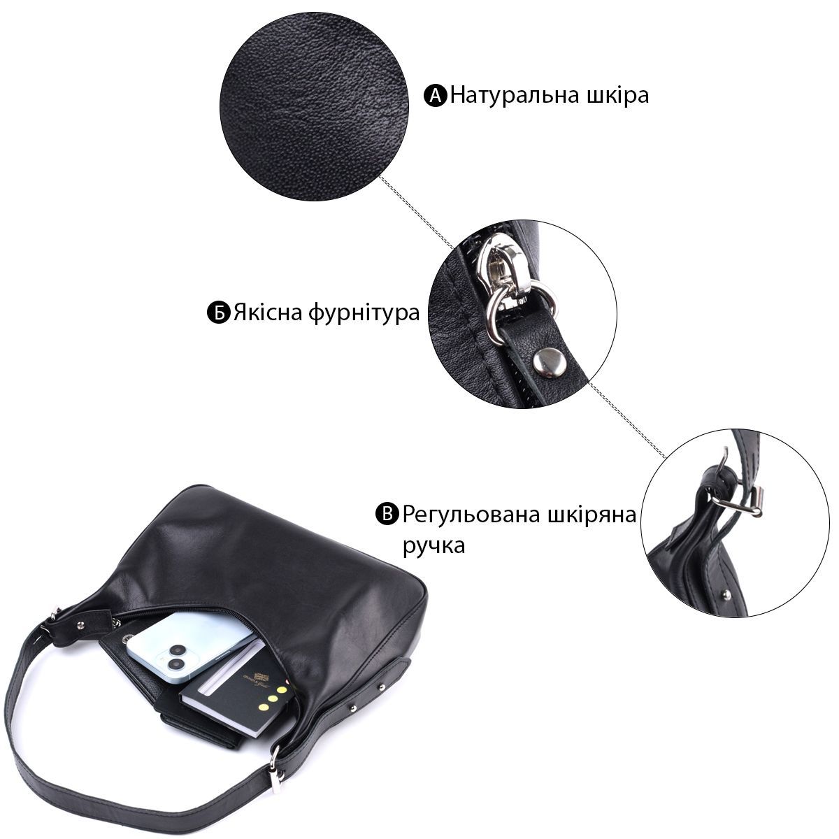 Жіноча сумка багет з регульованим ременем з гладкої натуральної шкіри Shvigel 22834 чорна