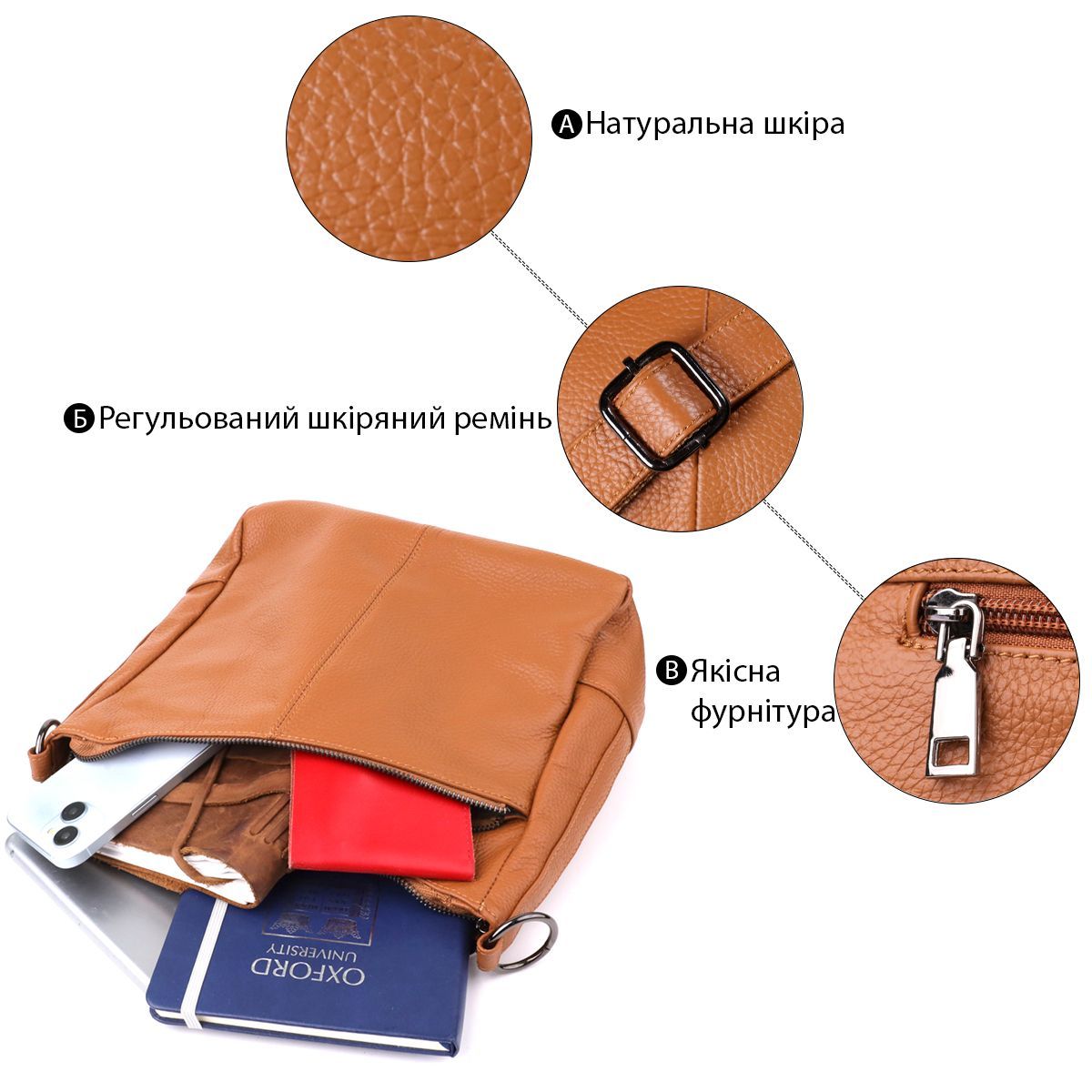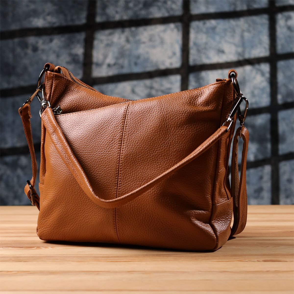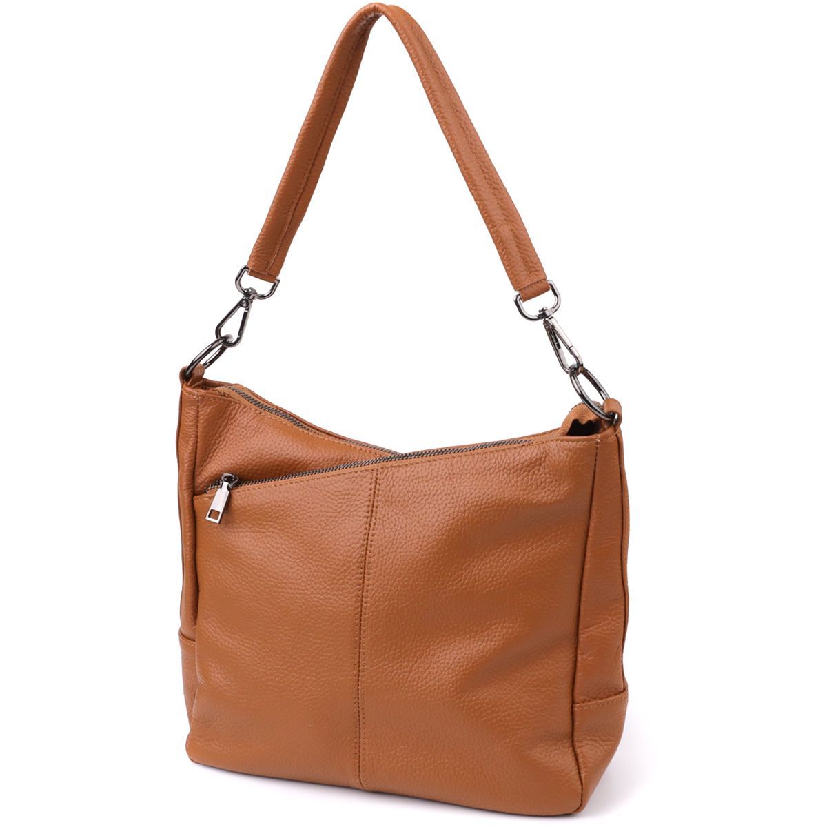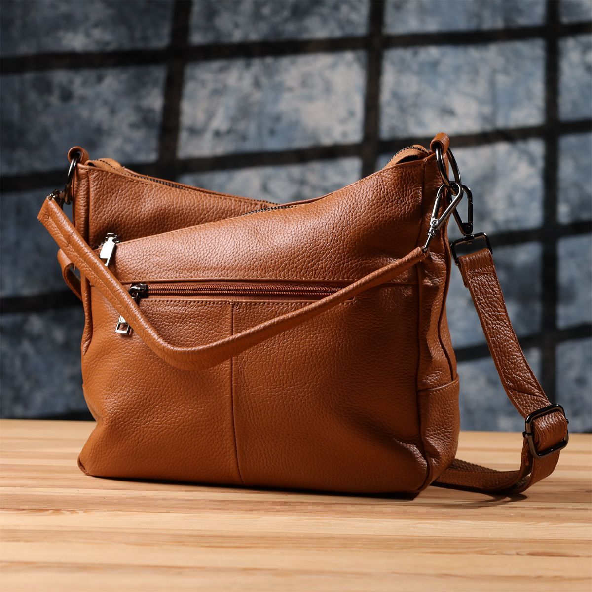 Коричнева шкіряна сумка з трьома відділеннями – це гармонійне поєднання стилю, практичності та якості, яке підкреслить ваш смак та підійде під будь-який гардероб.