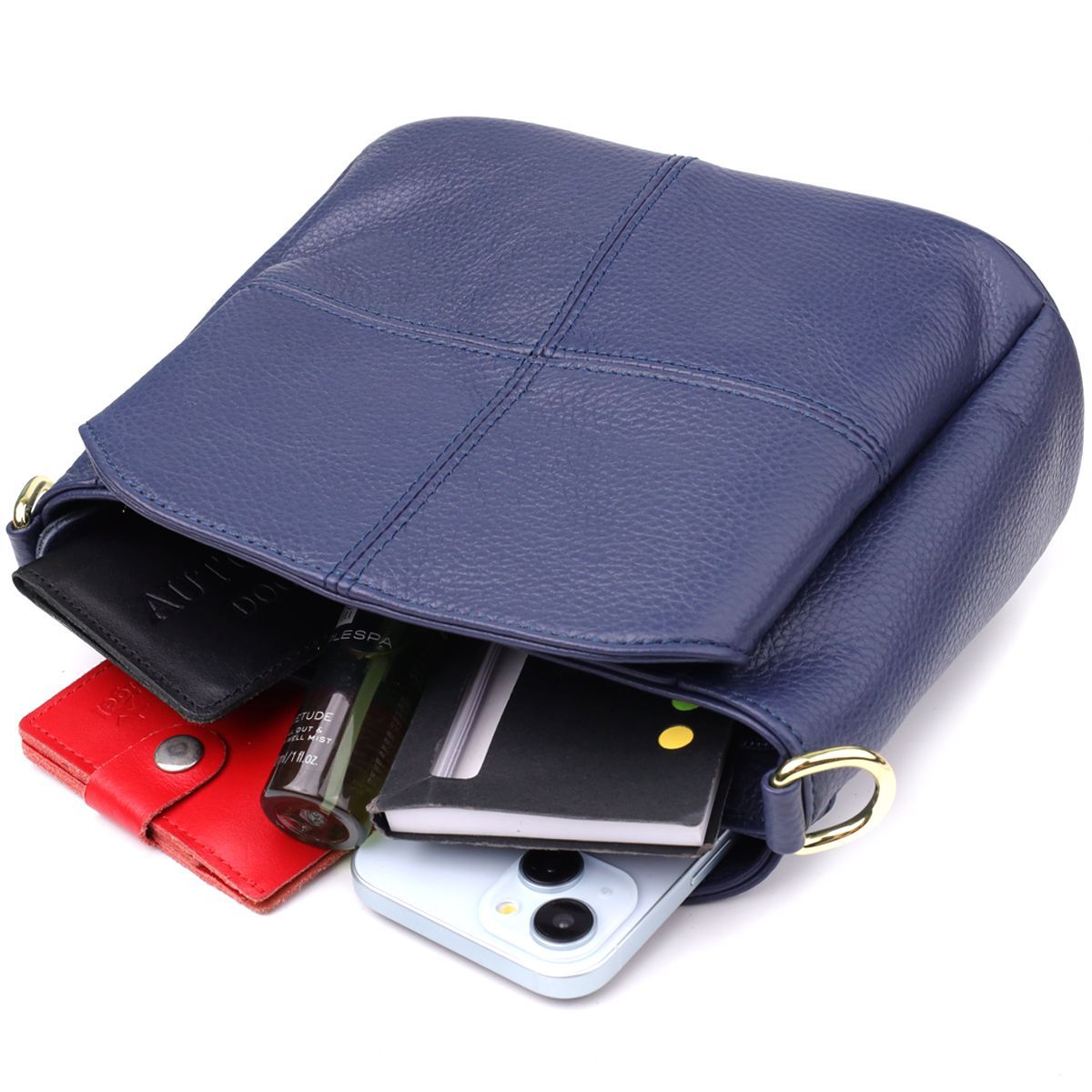 Ця синя шкіряна сумка – вибір тих, хто цінує елегантність, функціональність та нестандартні колірні рішення без зайвої химерності.