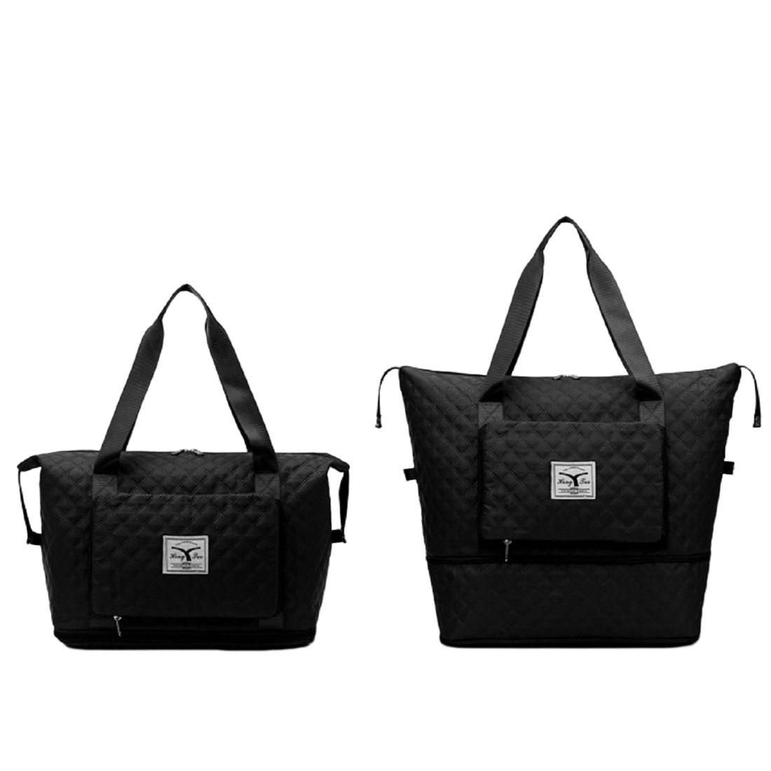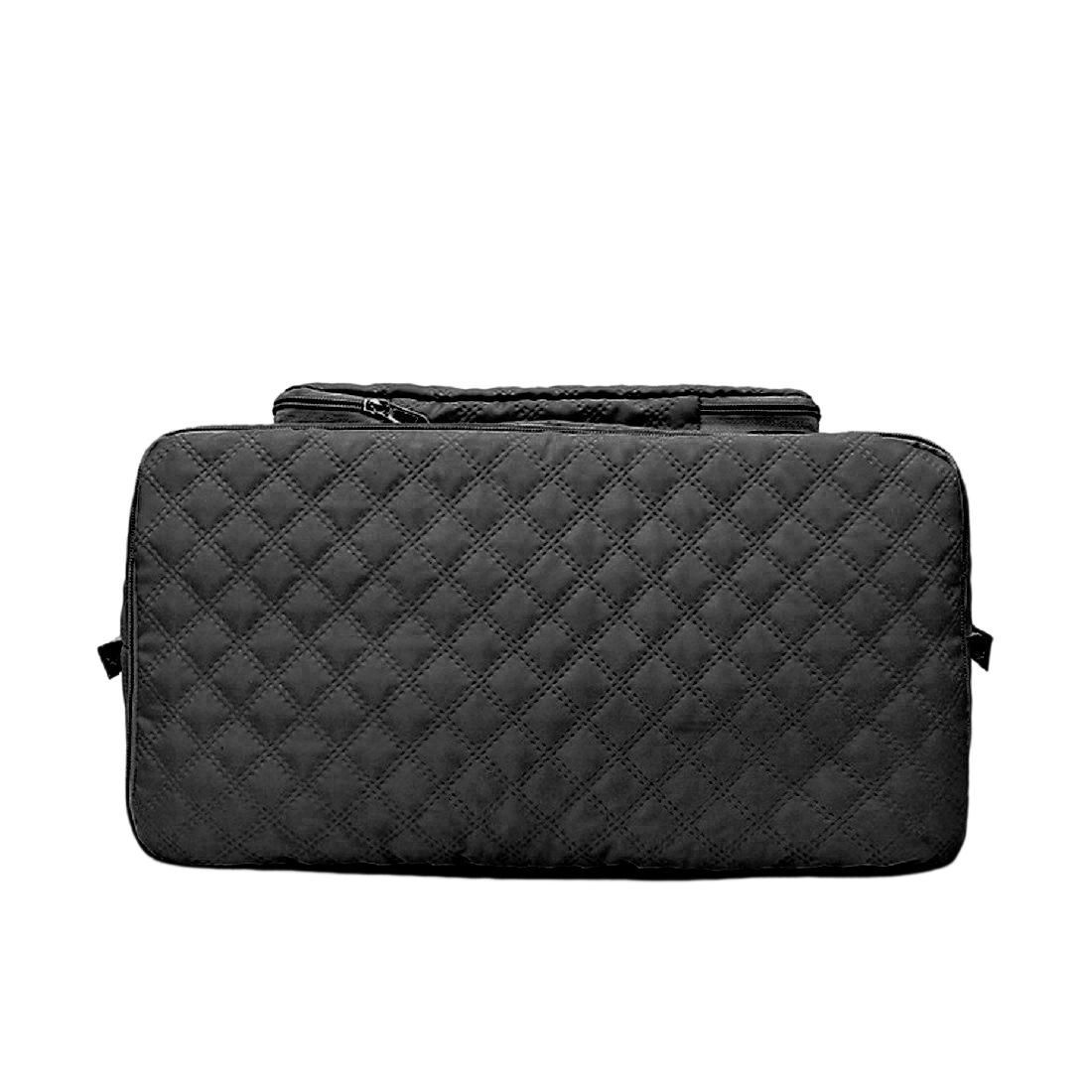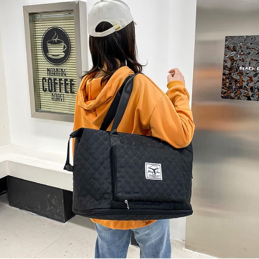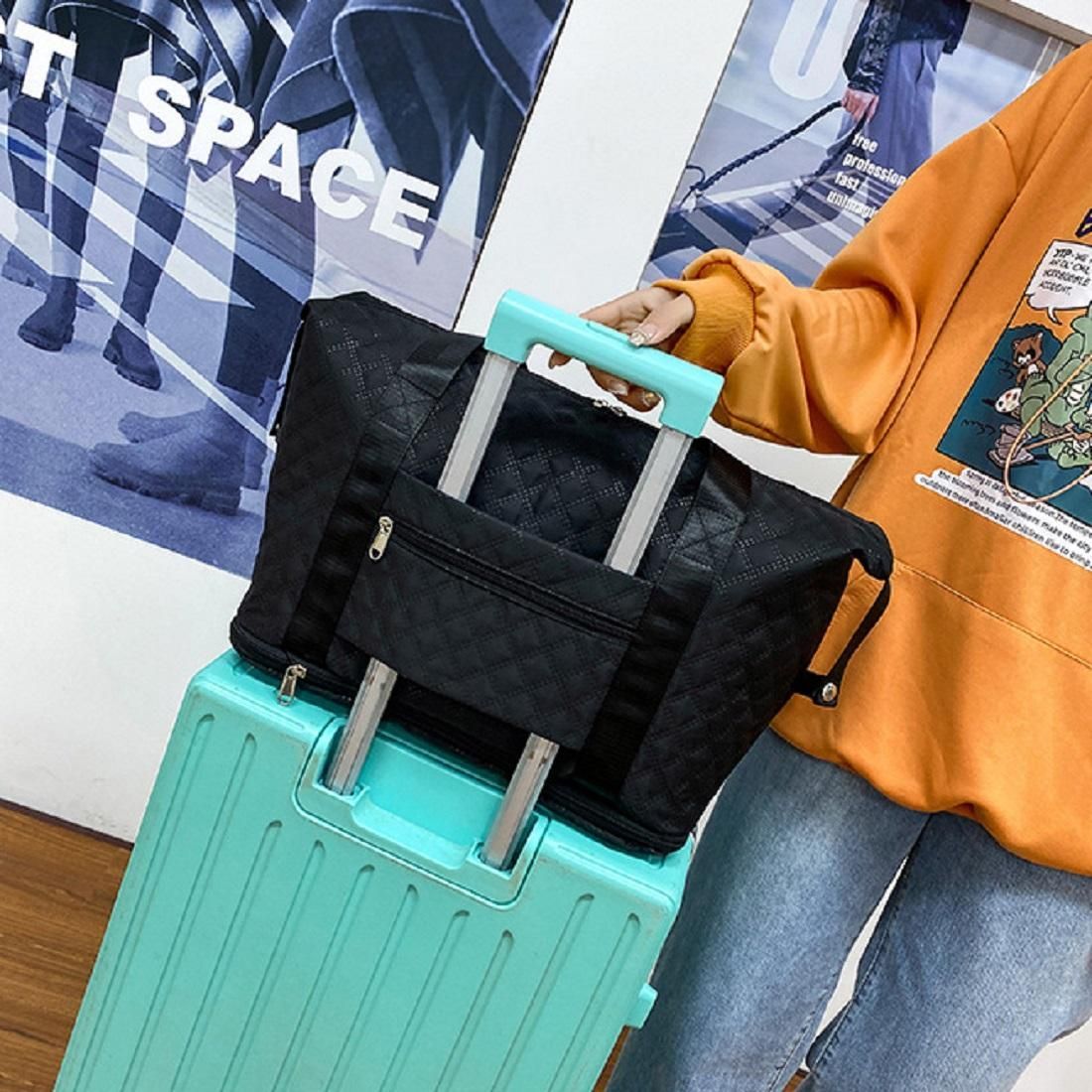 Жіноча сумка Confident TB1-T-229A пошита з міцної чорної стьобаної тканини, з вологовідштовхуючими властивостями. Розміри: 40 x 21 x 28см. Має одне основне відділення на блискавці, всередині якого розташовані дві невеликі кишеньки для дрібних предметів. Із зовнішнього лицьового боку також є нашивна кишеня на змійці. З тильного боку функціонал сумки виконаний таким чином, щоб її можна було надіти на ручку валізи і взяти з собою в дорогу. Трансформація цієї моделі полягає у можливості збільшити її довжину за необхідності, розкривши блискавку знизу виробу. Підкладка: текстиль. Колір чорний. Колір фурнітури чорний.