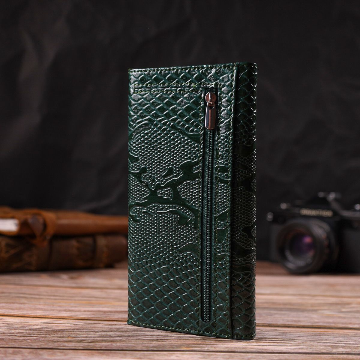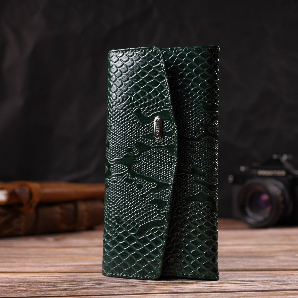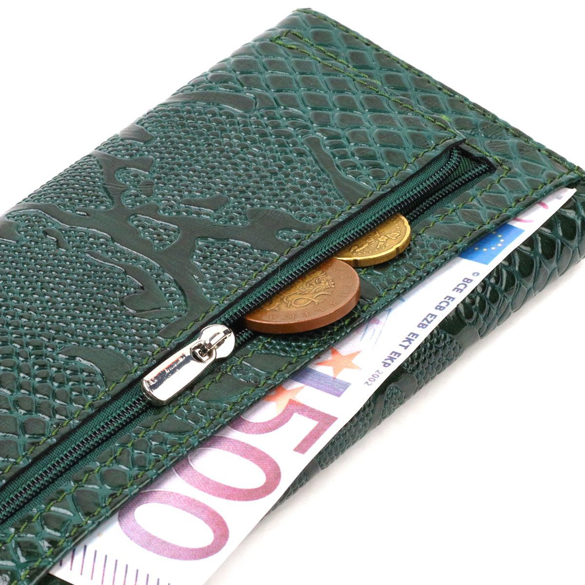Женское лакированное портмоне из натуральной кожи с тиснением под змею Canpellini 21694 зеленое