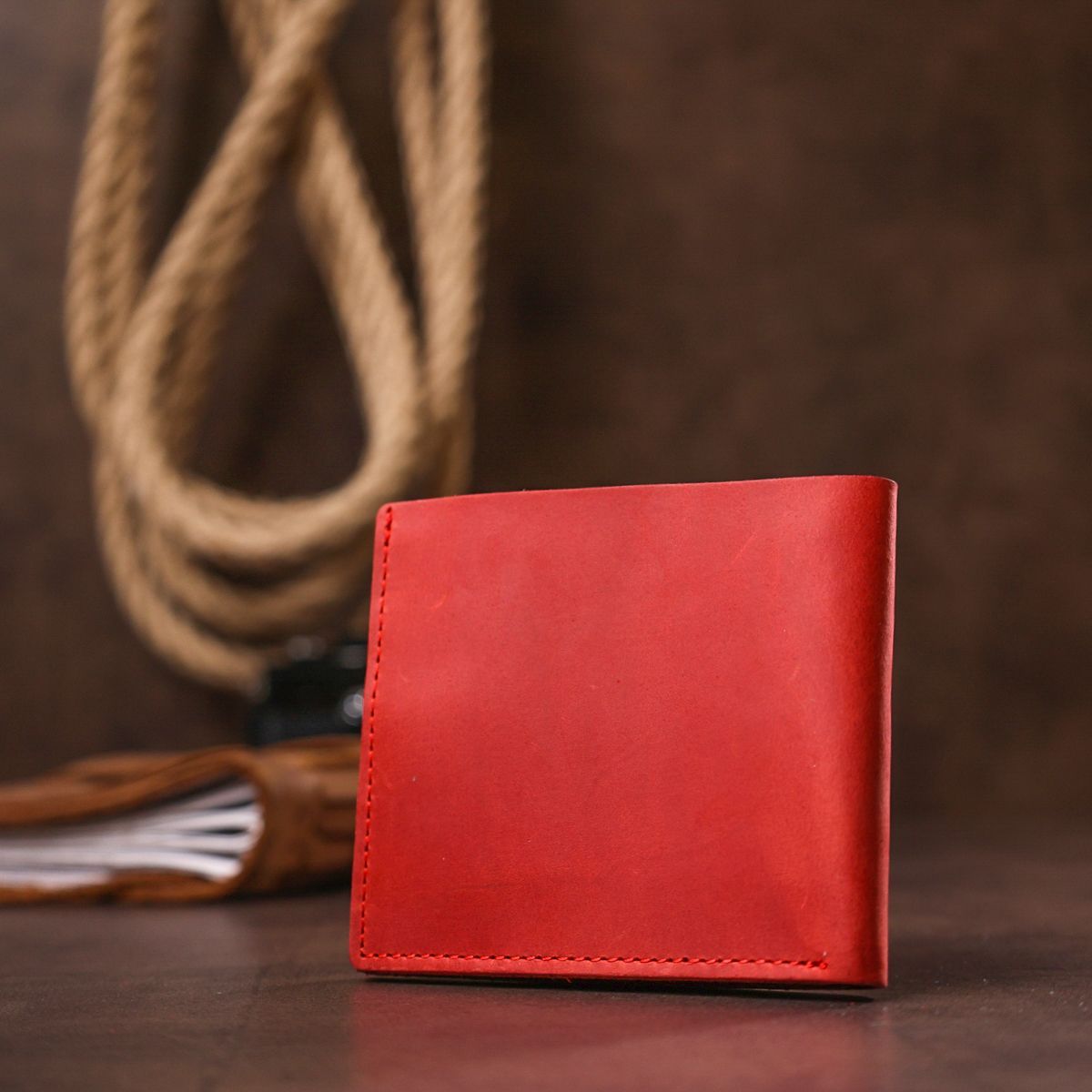 Небольшой женский портмоне в винтажном стиле от украинского производителя. Обладает красивым красным цветом и гладкой матовой фактурой. Материал изготовления – натуральная кожа высокого качества. Внутри есть просторное отделение на всю длину для купюр и слоты для визитных и кредитных карт. Закрывается аксессуар на хлястике с кнопкой.