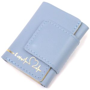 Женское кожаное портмоне в три добавления комби двух цветов. Сердце Grande Pelle 16731 желто-голубое