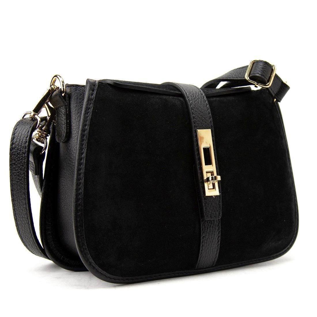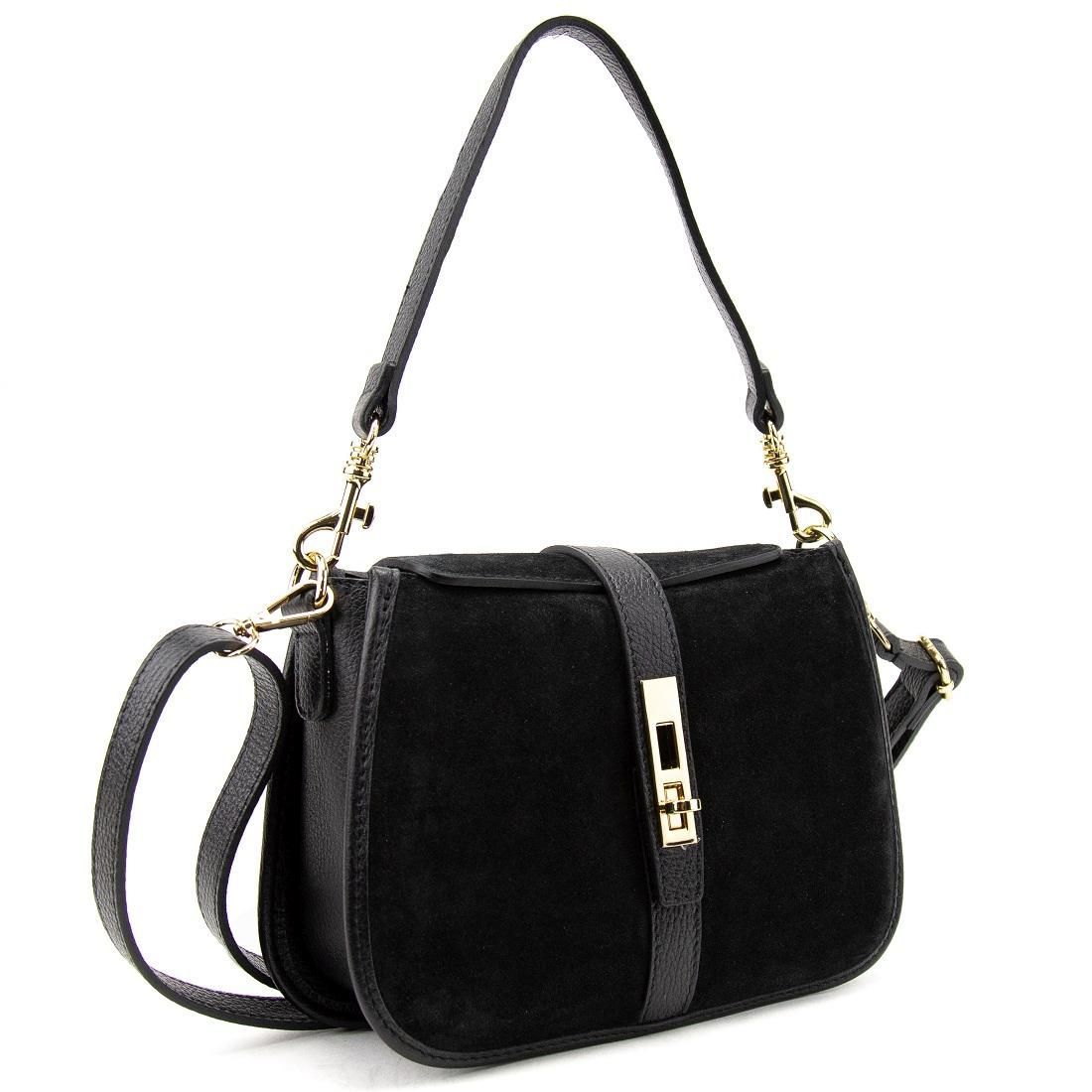 Жіноче замшеве кросбоді на застібці Firenze Italy F-IT-9895A чорне